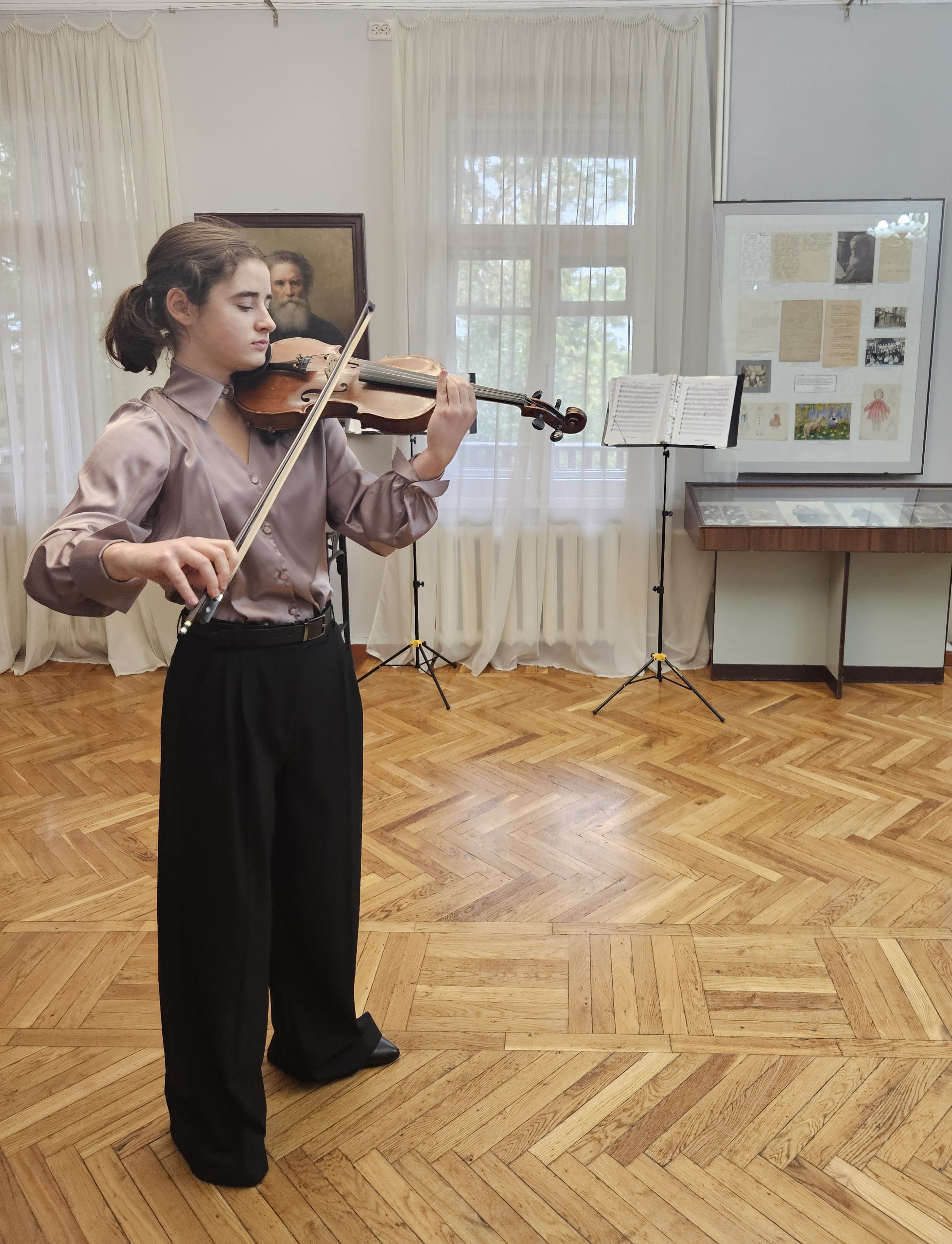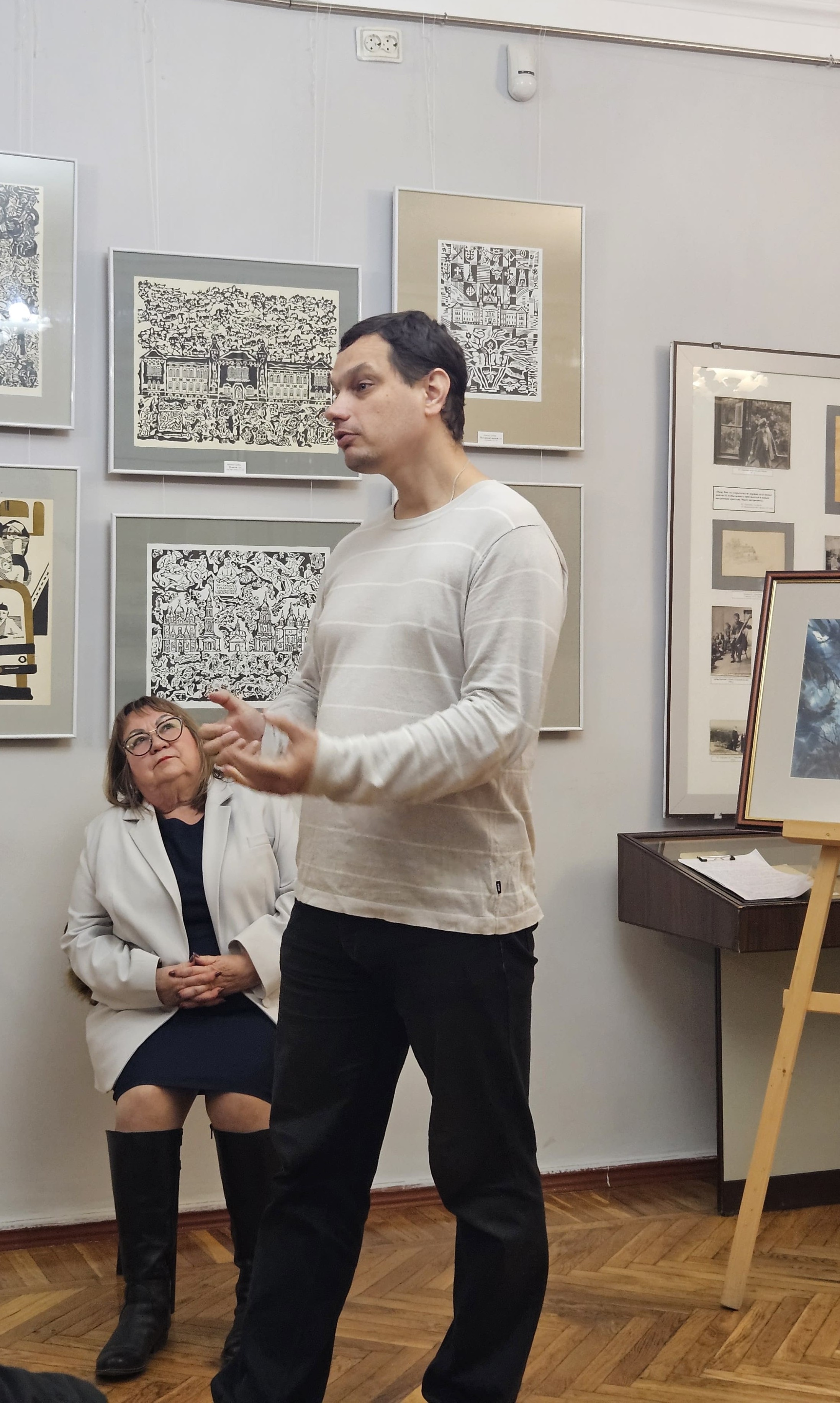 Серія «Портрет нації» складається із 77 ліноритів, у Полтаві представлено 69 з них. Зібрання люб’язно надане для огляду відомим полтавським колекціонером Олексієм Петренком. На відкритті виставки він подарував музею акварель із зображенням Сампсоніївської церкви ( автор – Марина Рожнятовська). Репрезентовані портрети українських державних, громадських, релігійних діячів, літераторів, до речі, є ілюстраціями до підручника «Історія України» (автор –Іван Крип’якевич, виданння 1992 року, Львів). Вдало доповнила захід концертна програма за участі учнів та викладачів струнно-смичкового відділу Полтавської дитячої музичної школи імені П.Майбороди із творів М.Скорика, В.Івасюка, В.Михайлюка. Дружнє спілкування поціновувачів образотворчого та музичного мистецтва продовжилося за традиційним короленківським чаєм.