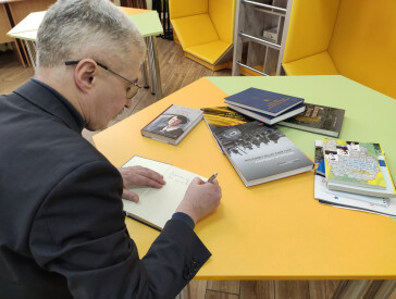 Автор люб'язно подарував свої книги і добірку інших книг, зокрема, документи з історії ОУН, нашій бібліотеці та бібліотеці ПНПУ імені В.Г.Короленка.