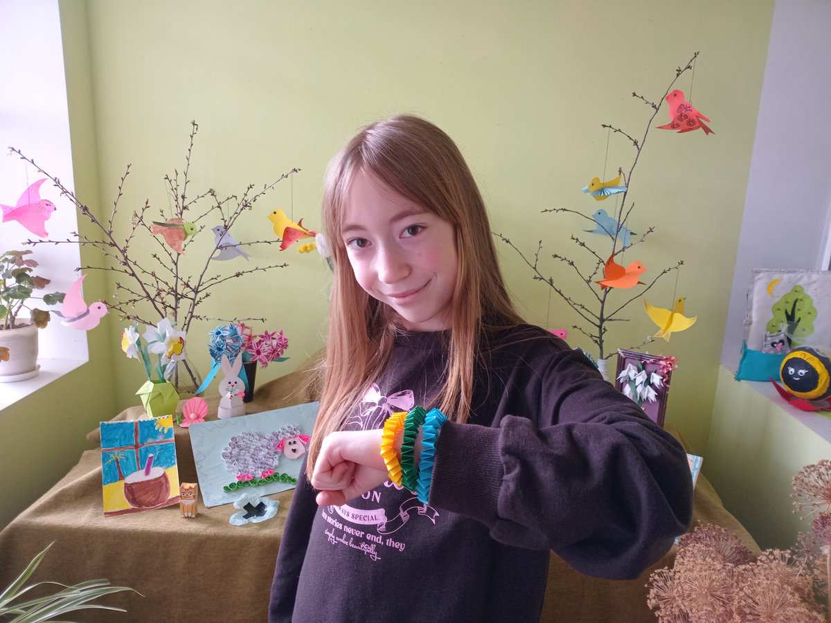 На майстер-класі у бібліотеці-філії №11 Центральної бібліотеки Полтавської міської територіальної громади минулої неділі вчилися виготовляти паперові браслети.