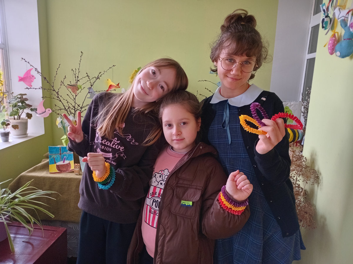 Учасниці так захопилися процесом, що сплели відразу по три різнокольорові браслети, які вони збираються носити самі, ще й подарувати своїм друзям.