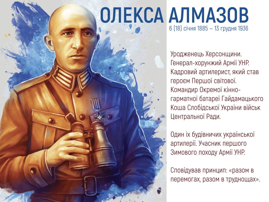 18 січня 2025 року виповнюється 140 років від дня народження Олекси (Олексія) Алмазова (1885-1936), військового та громадського діяча, генерал-хорунжого Армії УНР, борця за незалежність України у ХХ столітті.