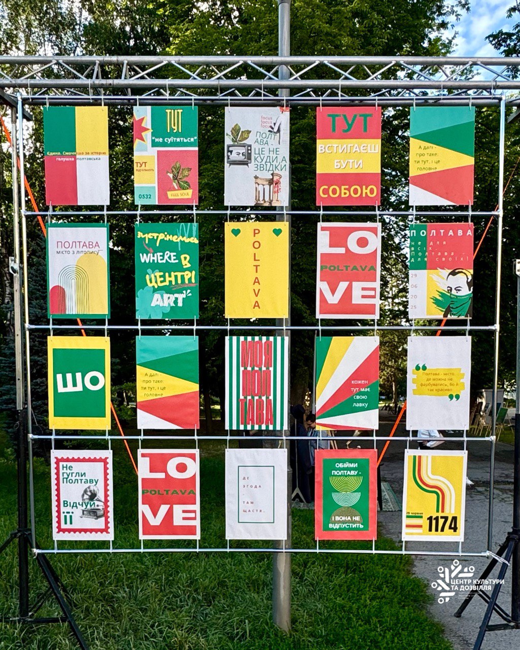 Спеціально до свята творчим колективом ЦКД була створена постерна фотозона, яка говорить із містом його мовою — суржиком, кольорами, ностальгією та любов’ю. Це не просто декор, а візуальна мапа емоцій: фрази, що народилися на вулицях Полтави, графіка, яка вловлює дух міста, й смисли, які хочеться зчитувати й зберігати. Тут — про Полтаву, яка встигає бути собою, де кожен має свою лавку, свою памʼять, свою любов.