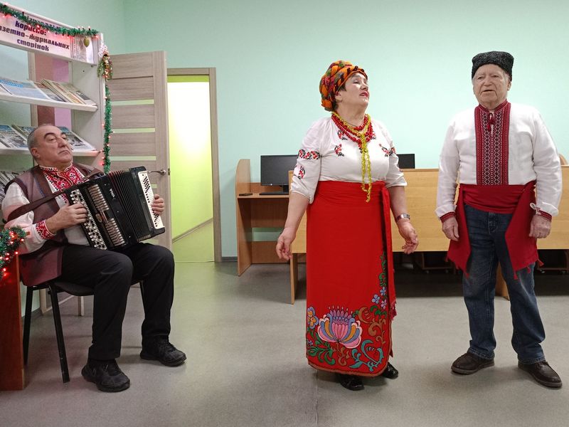 Ну а яке свято без пісні? Святковий концерт в бібліотеці-філії №7 Центральної бібліотеки Полтавської МТГ для присутніх дарував театр народної пісні «Берегиня» територіального центру соціального обслуговування (надання соціальних послуг) Шевченківського району м. Полтави під керівництвом Леоніда Співака.