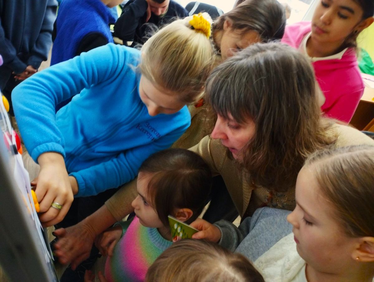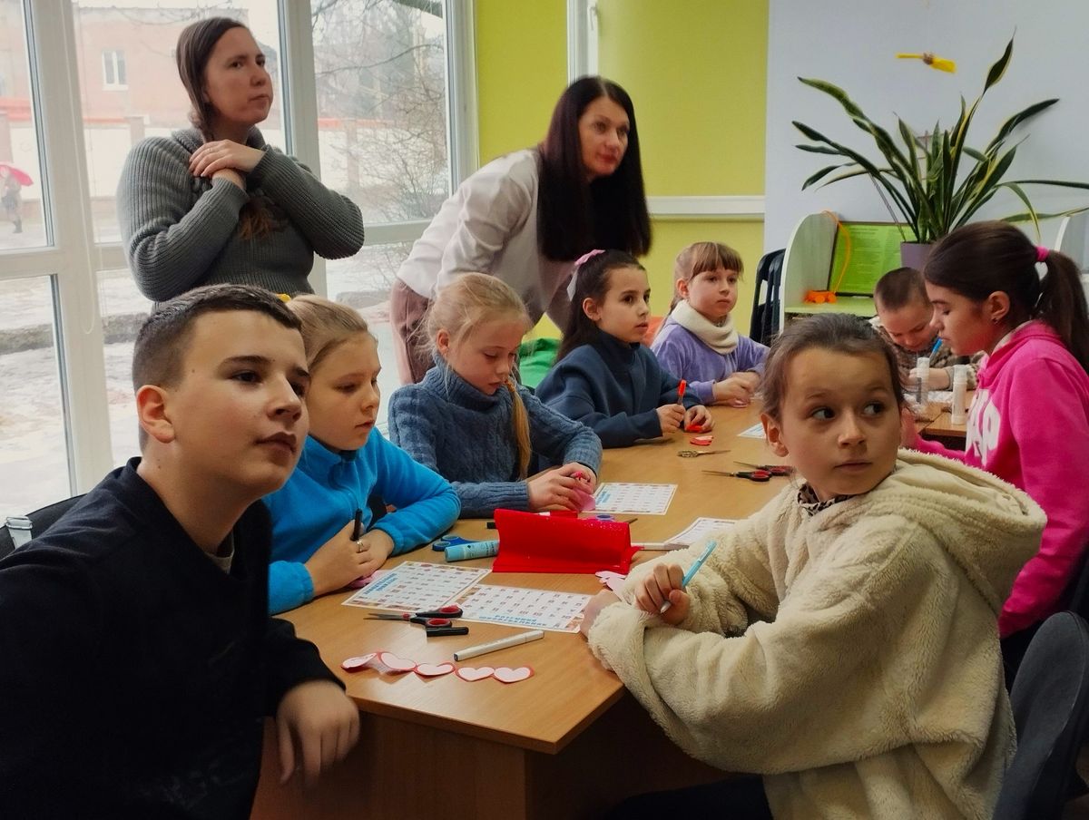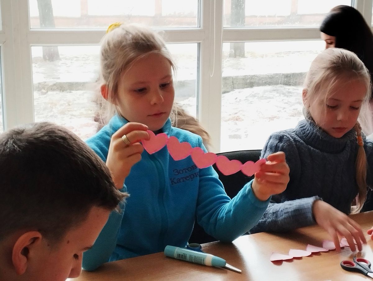 На інтерактиві хлопчики та дівчатка розшифровували слова, збирали складанку, без слів пояснювали емоції та почуття. А на майстеркласі виготовляли книжечку серця з кольорового паперу та магнітики з сердечками з фетру. Захід пройшов в рамках спільного проєкту «Етноінтерактив».