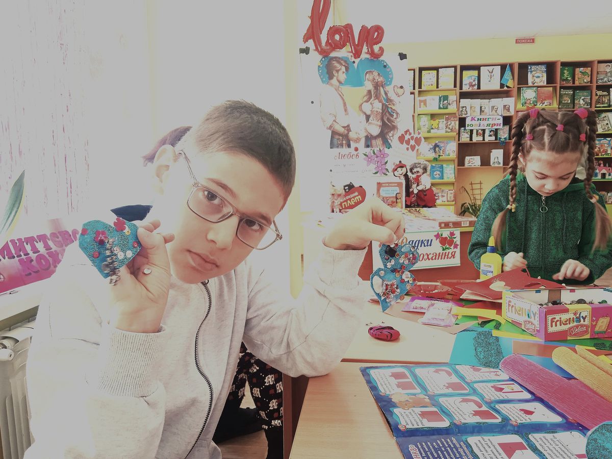 Активні читачі бібліотеки, учасники гуртка «VIKTORY», із радістю долучилися до святкового майстер-класу «Валентинка на щастя». Діти створювали маленькі сувеніри — сердечка, що стали символами любові, дружби й уваги одне до одного. Водночас вони переглядали цікаві книги про перше кохання, щирість і людяність, знайомилися з теплими та зворушливими історіями.