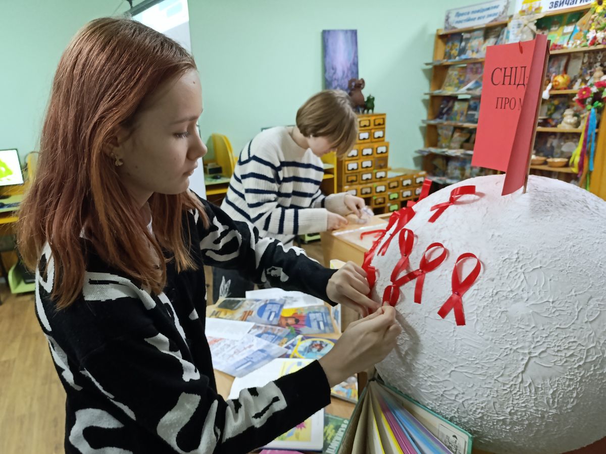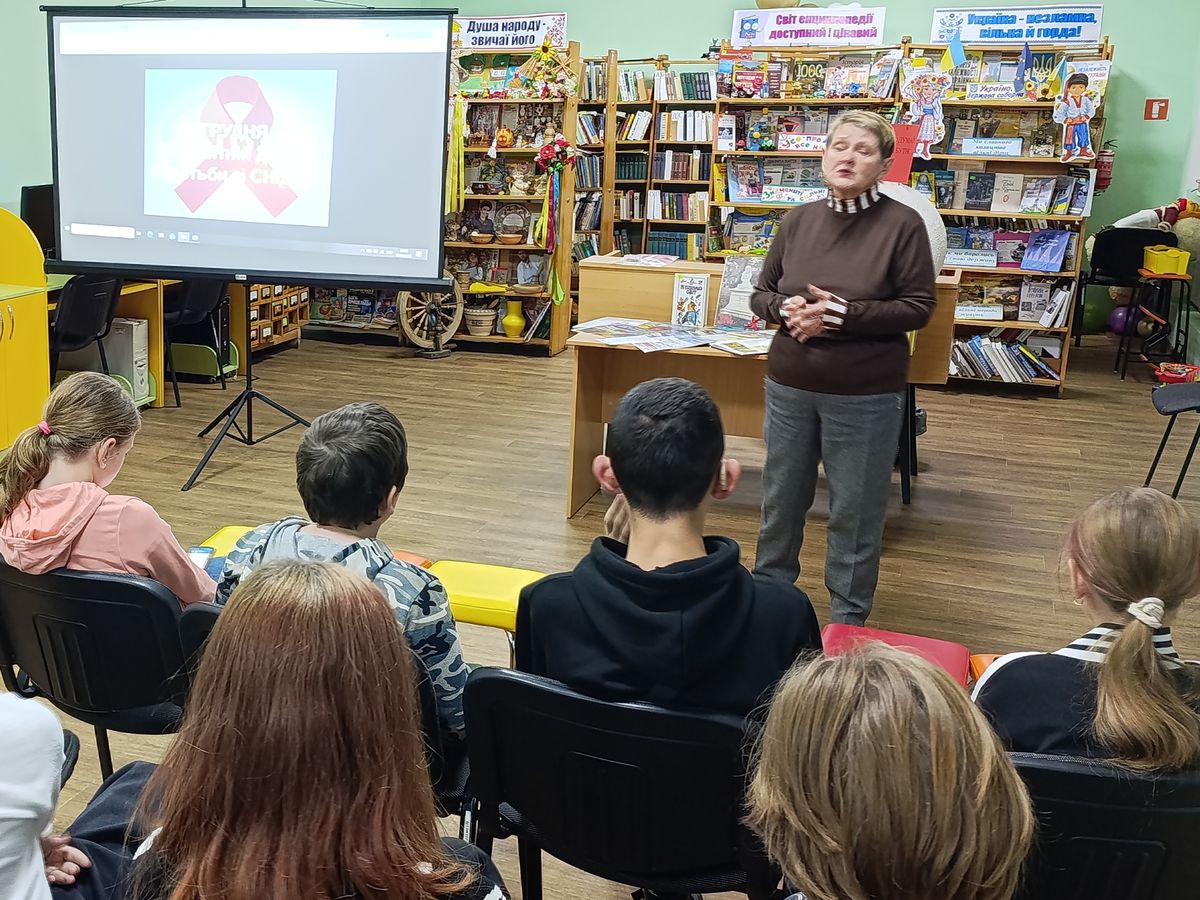 Напередодні Всесвітнього дня боротьби зі СНІДом у бібліотеці-філії №12 відбулася пізнавальна бесіда. На захід завітали семикласники ЗОШ №20. Спочатку ми з’ясували, що учні знають про цю хворобу та причини її виникнення, провівши мінівікторину «Що ти знаєш про СНІД?». Після цього бібліотекар у формі цікавої дискусії значно доповнила їхні знання, а допомогою в цьому став перегляд літератури «СНІД: подумай про майбутнє».