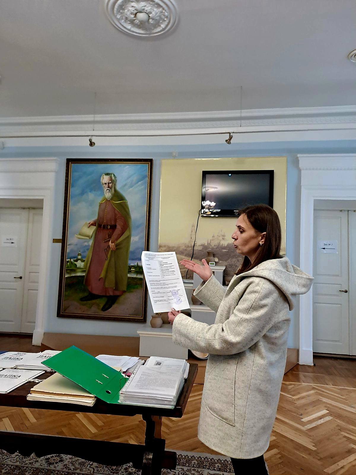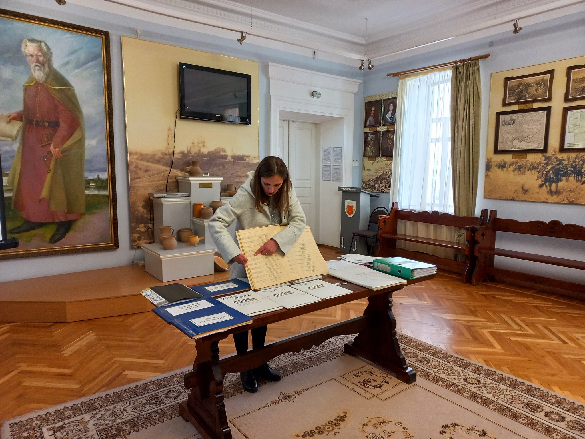 Далі відбулося науково-методичне заняття. Головний зберігач фондів Віта Гармаш ознайомила студентів із роботою відділу науково-фондової роботи та експозиції, зокрема з веденням облікової документації та умовами зберігання музейних експонатів. Завідувачка відділу науково-просвітницької роботи Марина Оніпко поділилася інформацією про освітні проєкти музею для різних вікових груп, а також розповіла про ведення звітної документації та планування діяльності установи.