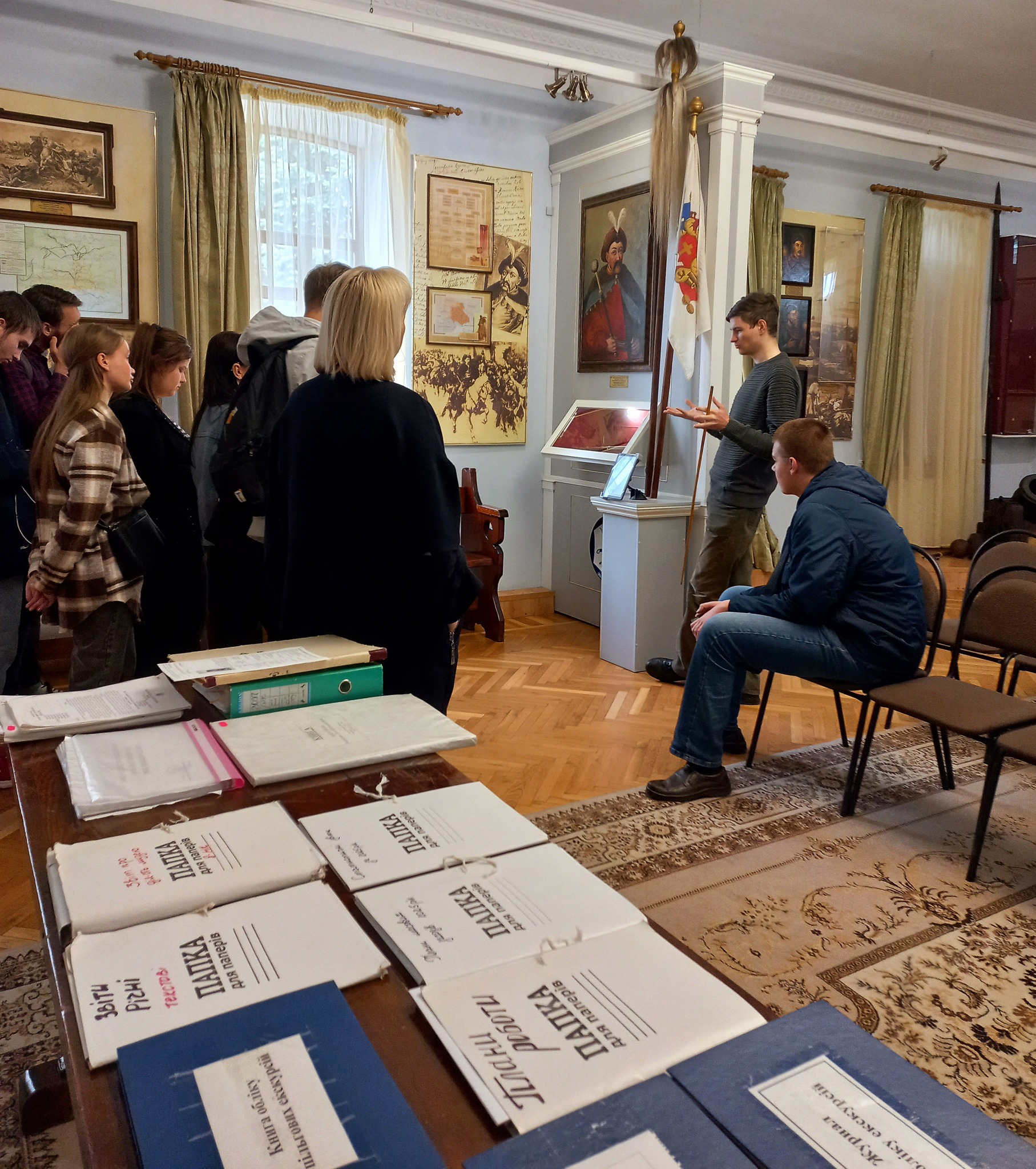 Студенти мали можливість познайомитися з практичними аспектами музейної справи. На початку з вітальним словом до студентської молоді звернулася директорка заповідника Євгенія Щербина, яка розповіла про створення та функціонування заповідника "Поле Полтавської битви", його структуру та основні положення, на які спирається заклад.
