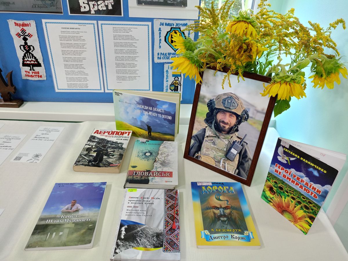 У День пам’яті Захисників України один зі столів бібліотеки зарезервований для всіх тих, хто мужньо захищав нашу свободу, честь і гідність. Для тих, хто віддав своє життя заради рідної землі, чий подвиг залишиться в нашій пам’яті назавжди. Для тих, кому ми вже не зможемо подякувати особисто. Серед них – полеглі Герої, життя яких було пов’язане з містом Полтавою: Боняківський Валерій Євгенович (14.01.1970 – 16.10.2014), Коряк Дмитро Володимирович (25.04.1989 – 11.02.2015), Мочалов Олександр Ігорович (28.02.1978 – 29.08.2014), Цедік Антон Ігрович (31.07.1987 – 29.08.2014), Цубер Ілля Григорович (23.08.1972 – 30.12.2023). Бібліотека шанує та зберігає пам'ять про наших полеглих Захисників: їм присвячено стенди, книжкові виставки.