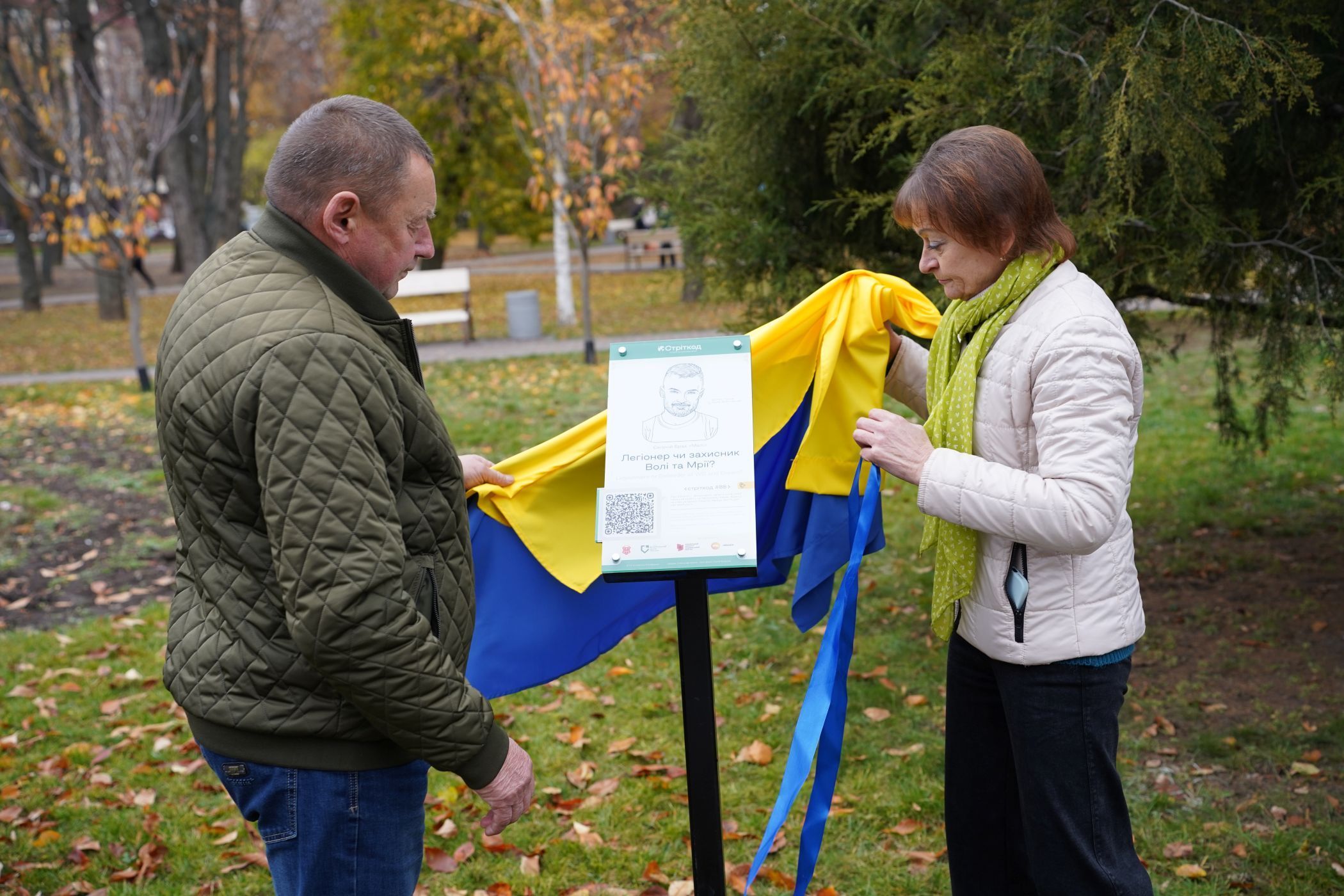 На табличці є QR-код з посиланням на сторінку, де знаходиться інформація про Захисника.