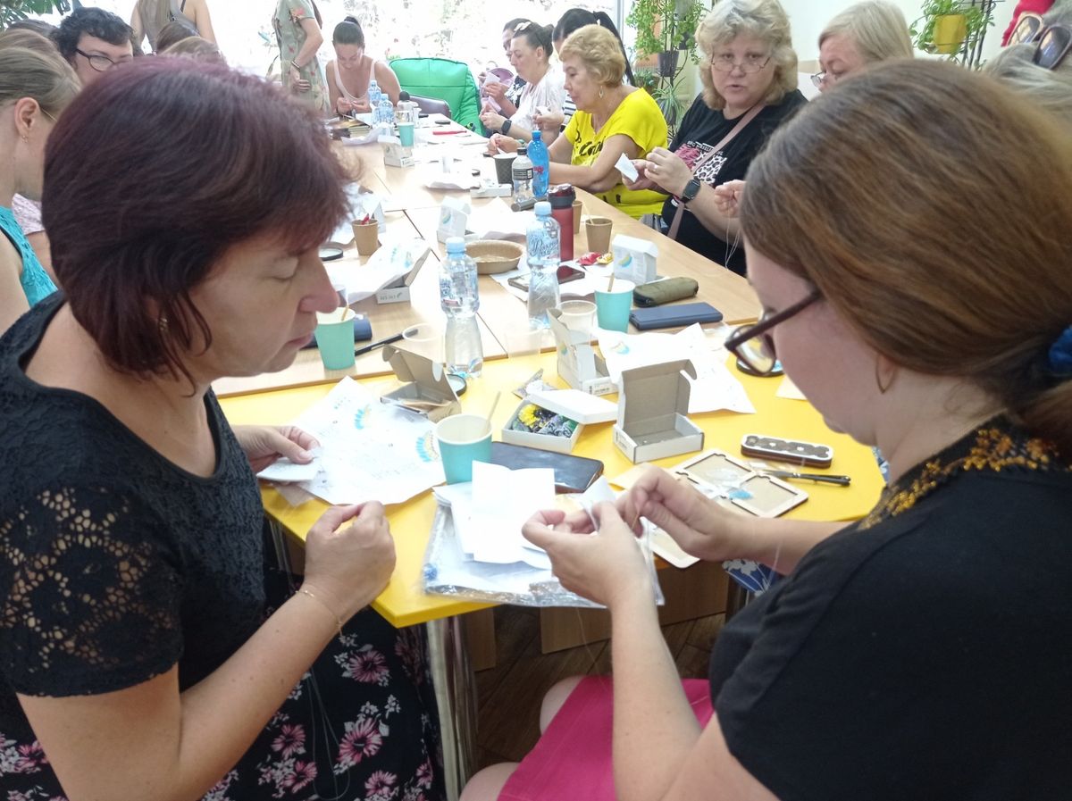 Присутні мали можливість власноруч виготовити витончені аксесуари. Вони отримали справжнє естетичне задоволення від процесу створення, який проходив у теплій та дружній атмосфері. Кожна учасниця отримала на згадку свій витвір - чудову прикрасу, яка буде дарувати добро й тепло на душі.