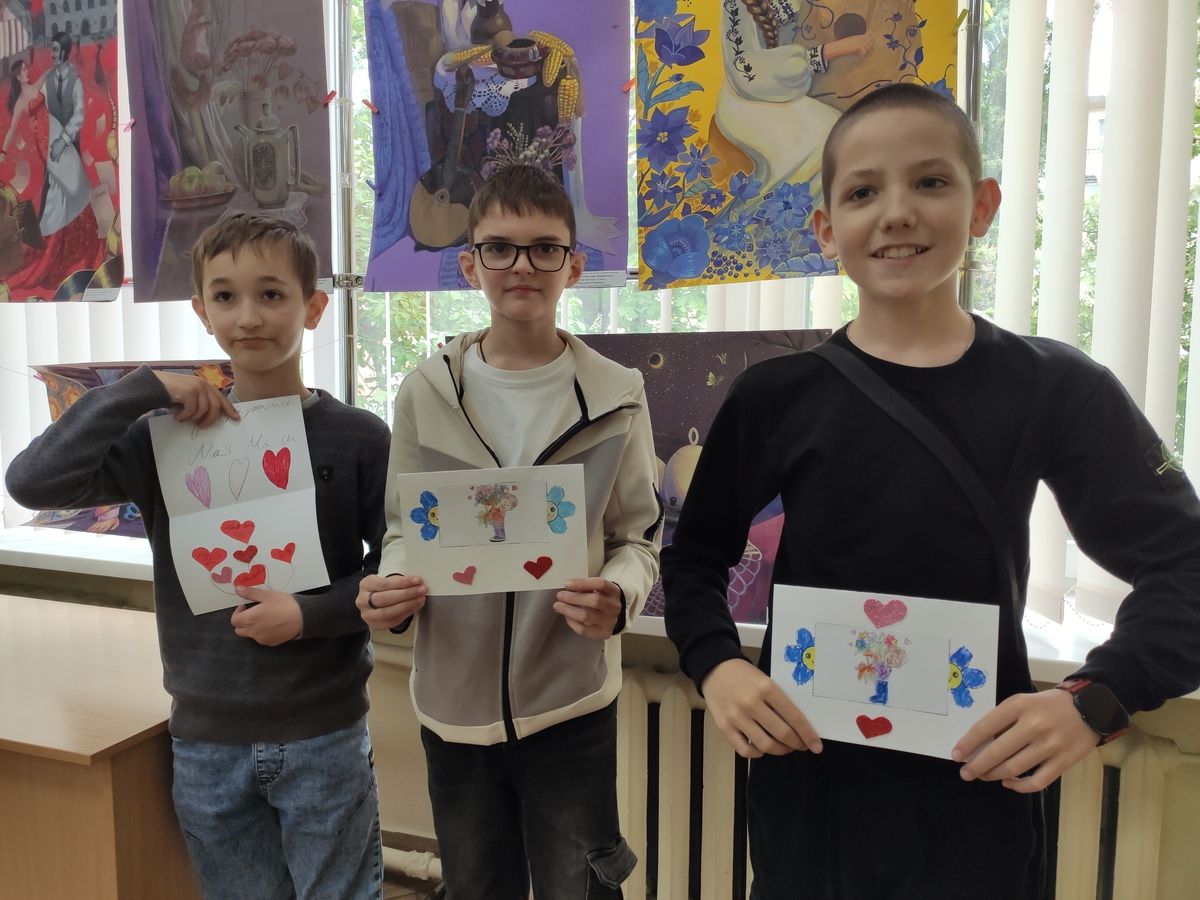 Діти з ентузіазмом бралися за кольорові олівці, фломастери. Кожен обирав свою палітру, наповнюючи чорно-білі контури життям та теплом. Діти старанно розфарбовували кожну деталь, додавали блискітки, щоб листівка сяяла. Хтось обирав ніжні пастельні відтінки, хтось – яскраві та насичені кольори, відображаючи свій унікальний погляд на світ.