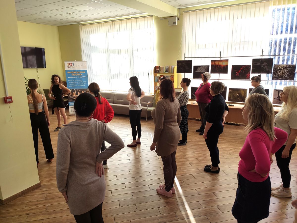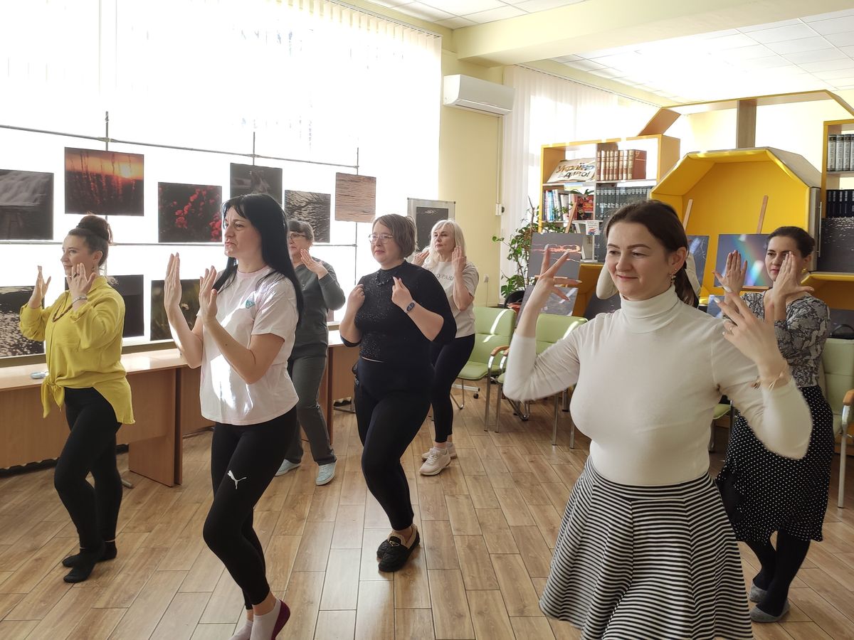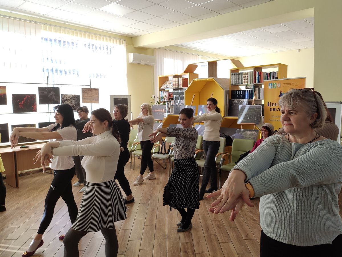 Під час майстер-класу учасники познайомилися з основними рухами популярного латиноамериканського танцю. Інструкторка крок за кроком показувала базові елементи, пояснювала ритм та допомагала учасникам відчути характер і настрій танцю. Атмосфера була невимушеною та дружньою, тож навіть ті, хто вперше пробував танцювати, швидко долучалися до руху. Жінки різного віку — студенти, читачі бібліотеки, навіть працівники — із задоволенням пробували нові рухи.