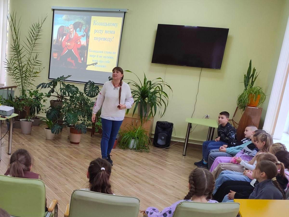У світ народознавства та традицій поринули юні учасники пізнавального заходу, що завітали до Центральної бібліотеки ПМТГ. Діти дізналися багато цікавого, зокрема, отримали нові знання про історію козацтва, знайомилися з життям, побутом і звичаями запорозьких лицарів. Модератор зустрічі розповіла про гетьманів і всіх, хто боровся за волю України, а також про те, що козацький дух живе і сьогодні — у серцях сучасних захисників.