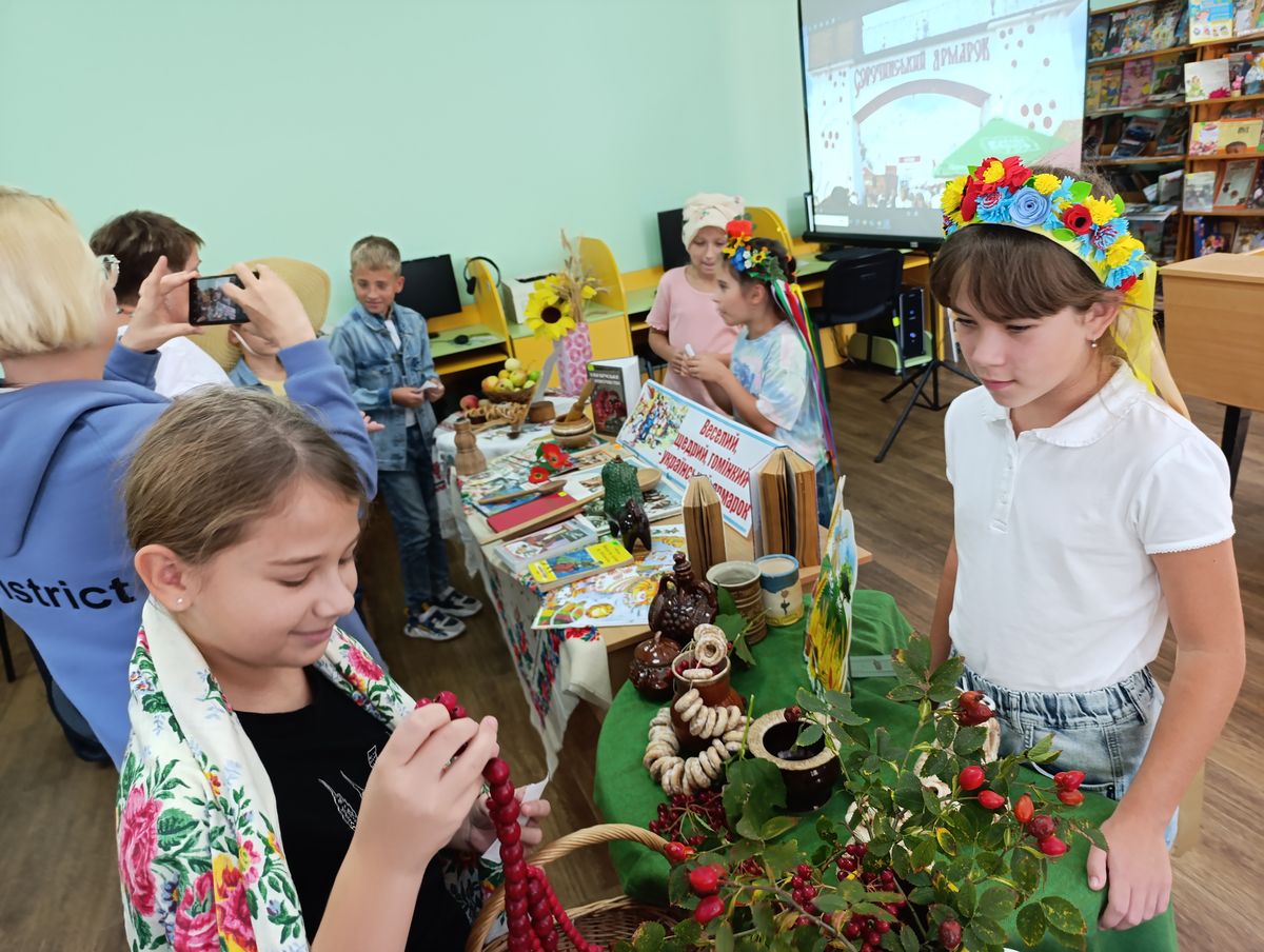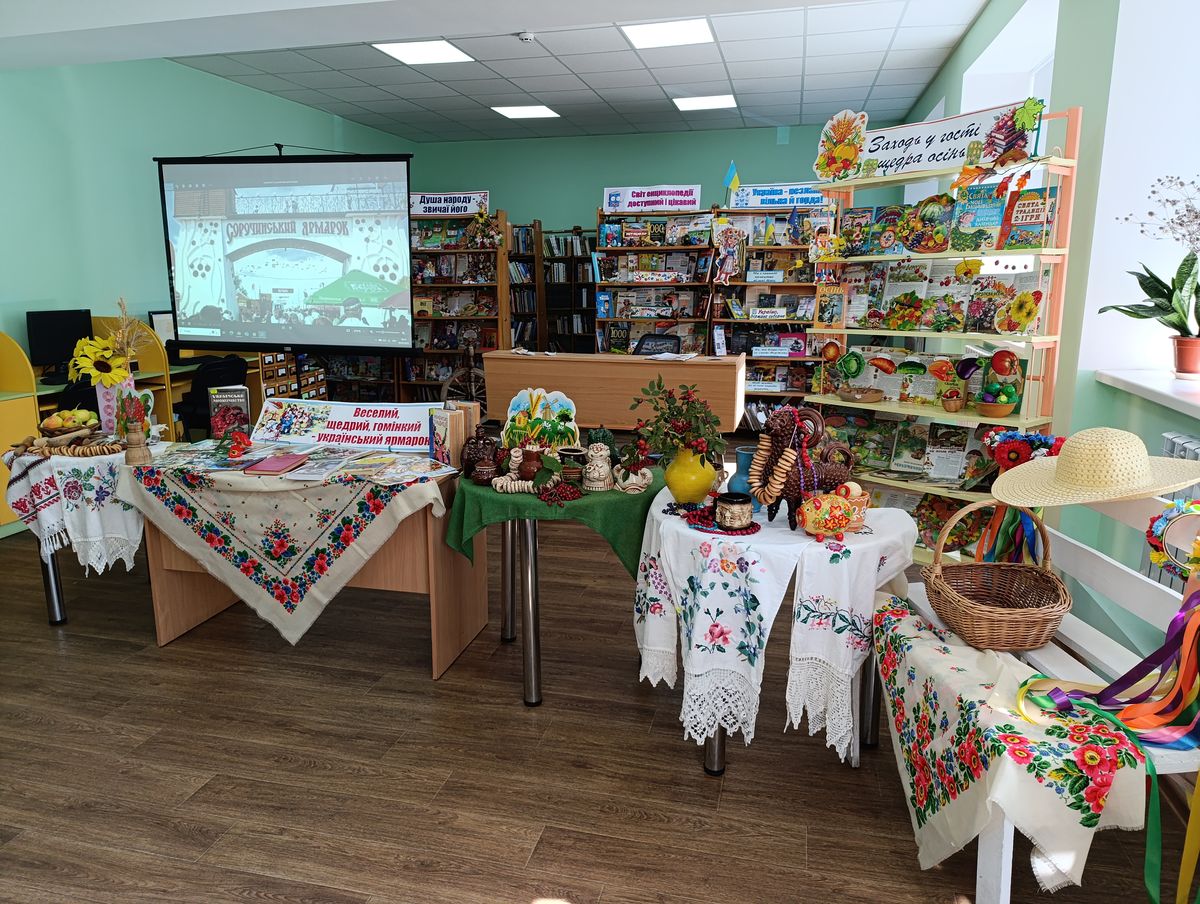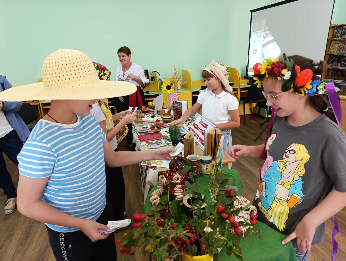 До заходу ми підготували чудову виставку-інсталяцію «Як колись ярмаркували» та тематичну книжкову поличку «Весела душа ярмарку». Діти мали нагоду побути в ролі покупців і продавців найрізноманітнішого краму. Хоч гроші були іграшкові, зате торги — справжні! Це дійство захопило школярів і принесло їм чимало радості.