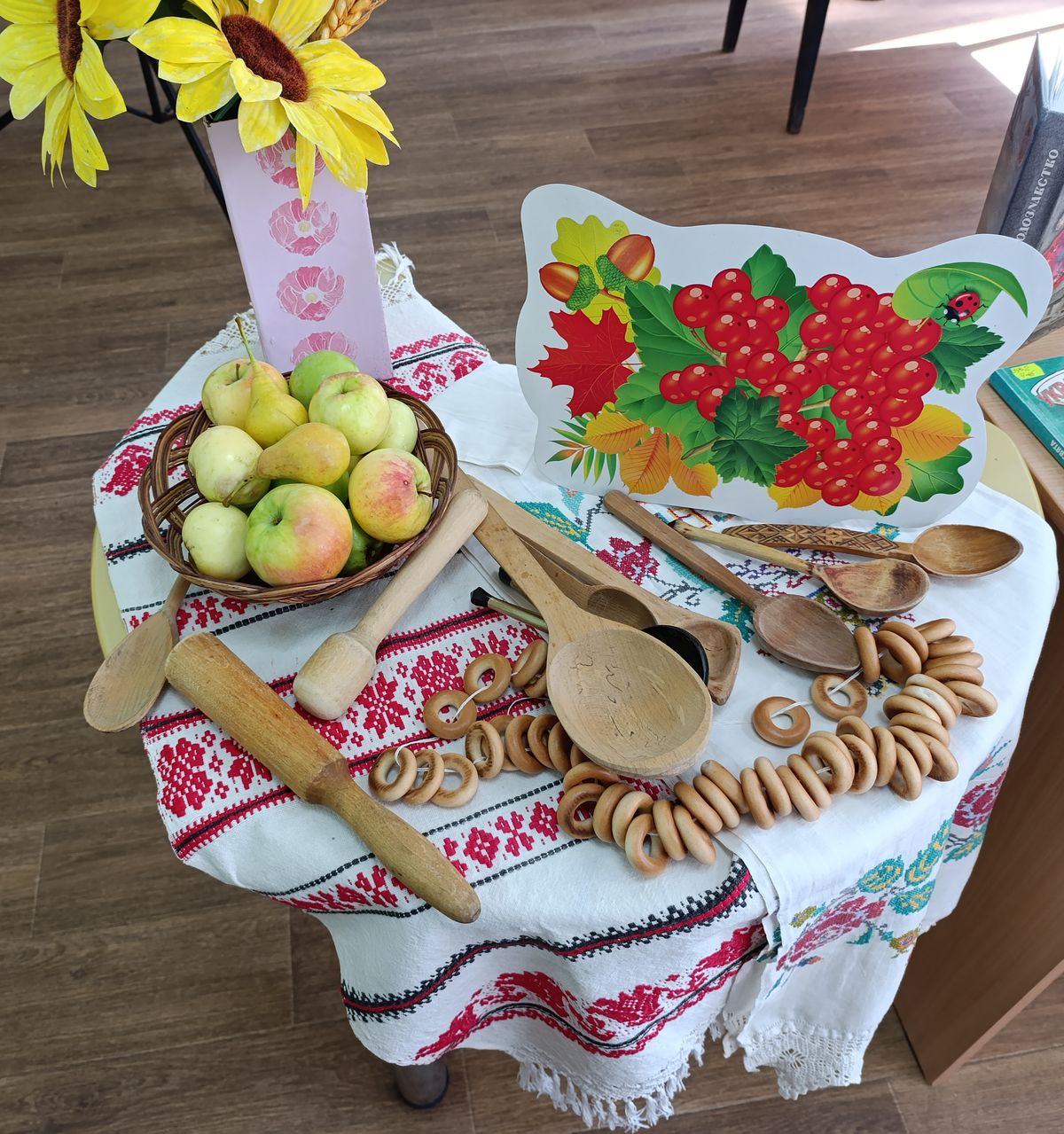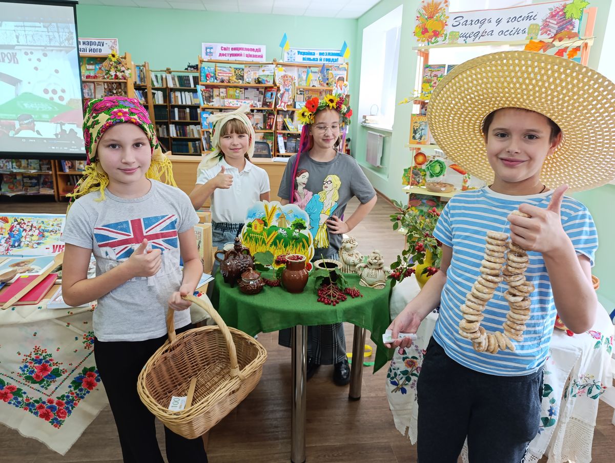 Як швидко промайнуло літо, і до нас завітала золота осінь. Прийшла вона в Україну з налитою сонцем пшеницею, запашним медом, пишними жоржинами, горішками ліщини, стиглою кукурудзою та різними смаколиками. Адже красуня-осінь — справжня чарівниця й годувальниця. Усе це збіжжя надбав невтомний український народ – трудівник, який своєю працею землю прикрашає й багатий урожай збирає.