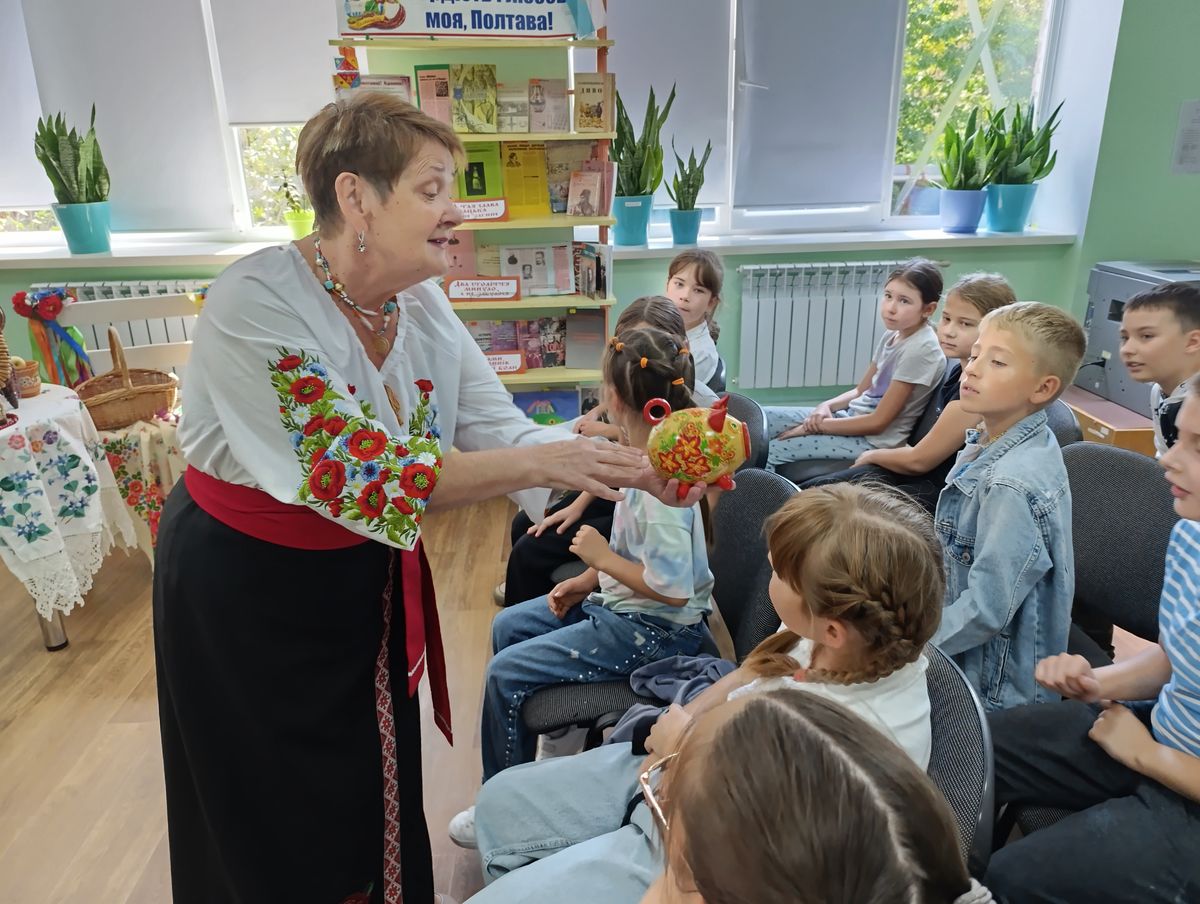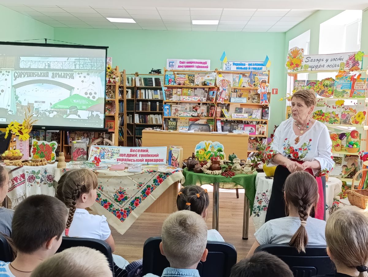 Бібліотекар розповіла дітям про історію ярмаркування: про Іллінський та Сорочинський ярмарки, що відбувалися на Полтавщині, а також у самій Полтаві. Школярі дізналися, чим торгували наші предки, звідки приїздили гості та яку користь приносили ярмарки для розвитку міста.