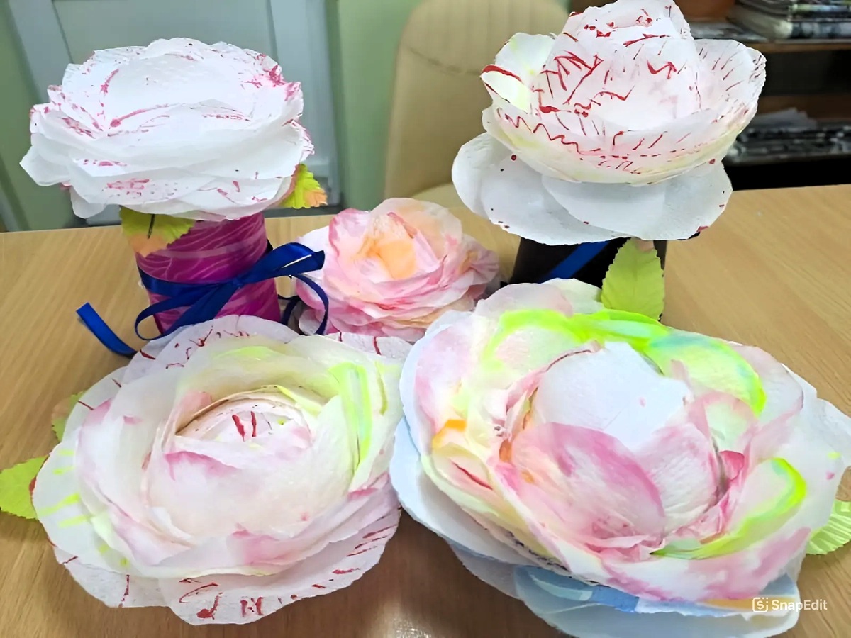 Здавалося б, звичайні серветки нічим не можуть здивувати, а насправді з них можна ще й змайструвати різноманітні квіти. Красиву троянду можна створити не тільки для себе, а й в якості презента для когось з близьких. Це прекрасний подарунок мамі, бабусі та чудовий декор інтер’єру. Учасники заходу отримали масу задоволення від атмосфери, музичного фону й самого процесу створення квітів.
