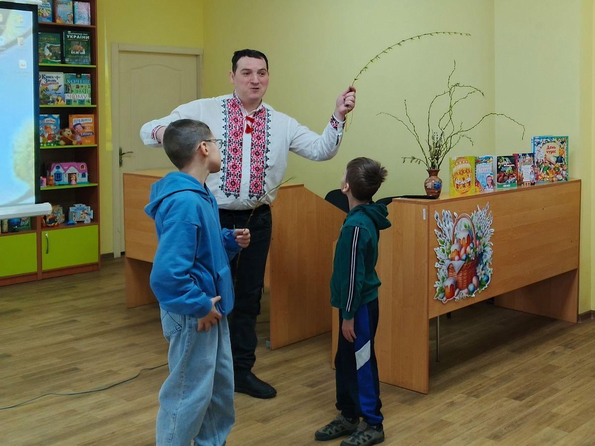 У день, коли вербичка несе у дім добро і благословення, бібліотека гостинно відкрила двері для юних читачів бібліотеки-філії №13 Центральної бібліотеки Полтавської міської територіальної громади. Завідувач сектору соціокультурної діяльності Центральної бібліотеки Олексій Орел за проєктом «Таємниці народних свят» запросив відвідувачів у захопливу подорож «Від вербички до пасочки», де кожен зміг доторкунитися до традицій великодніх свят.