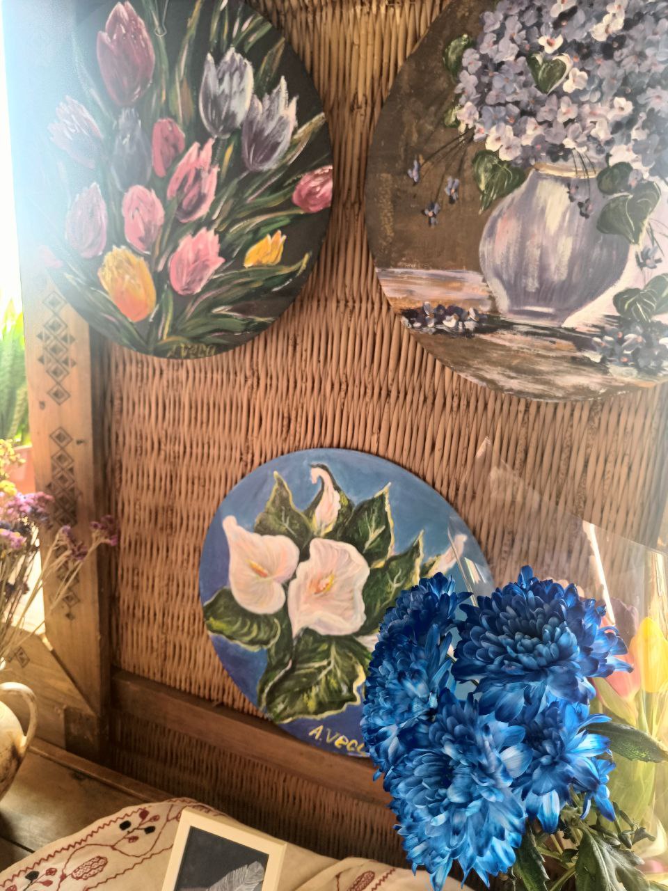Її роботи ніжні і яскраві, вони створюють простір легкості, світла й оновлення, де кожна робота наповнює атмосферу теплом і гармонією. Ці картини створені, щоб нагадувати про красу нового початку.