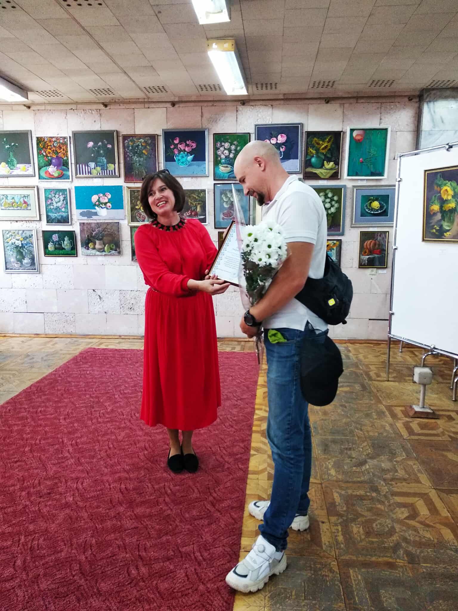 Виставка приурочена до 65 річниці від Дня народження викладача вищої категорії, методиста ПДХШ ім. С.Пашинського Валентини Тарасенко, яка народилася в місті Полтава у 1960 році. Зацікавленість мистецтвом зʼявилася ще в ранньому дитинстві. Є випускницею нашої школи і все своє життя присвятила роботі з дітьми в рідному закладі. Працює у техніці олійного живопису, переважно у жанрі натюрморту. Твори цього жанру вчать нас бачити, любити і розуміти світ, сприймати його вічну цінність. Картини В.Тарасенко – замилування оточуючим світом, його різноманітністю і різнобарвністю, пошуки прекрасного у буденних речах.