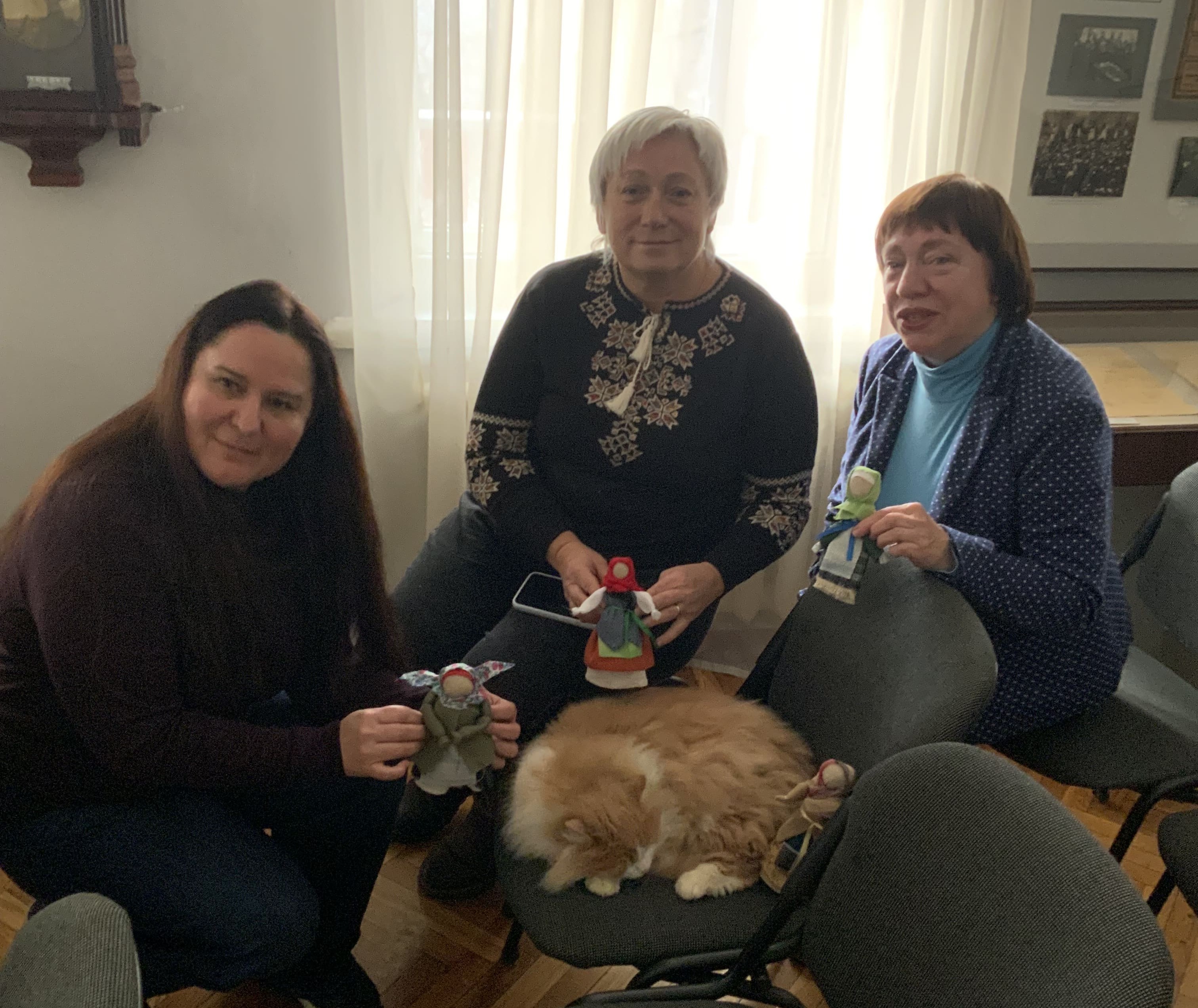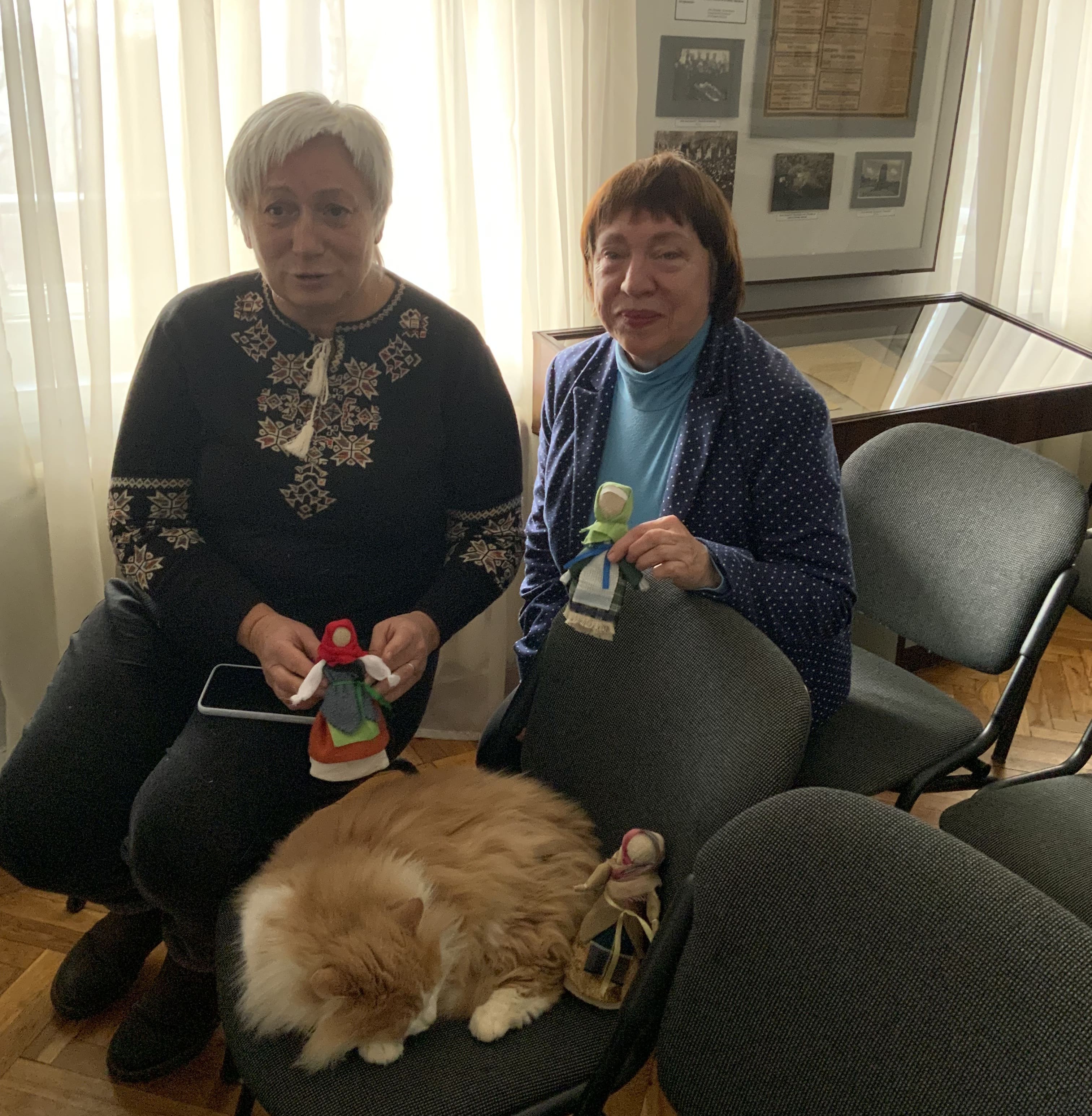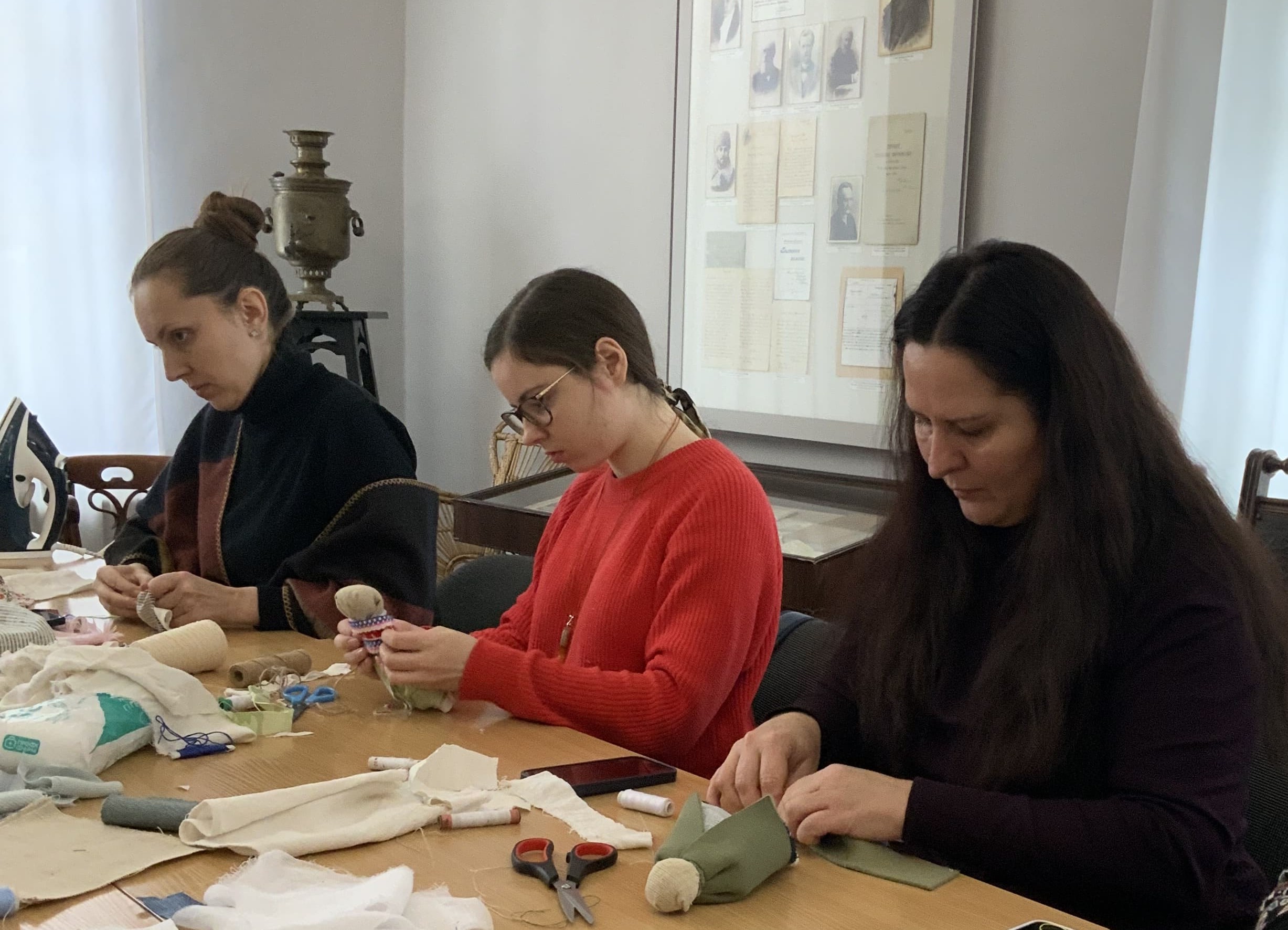 Тренери сьогоднішнього вебінару – Тетяна Саєнко та Наталія Дігтяр –авторки виставки «Відлуння століть», яка наразі експонується у виставковій залі музею, не лише розповіли про різноманітні традиції виготовлення і використання вузлової ляльки нашими пращурами, а й провели цікавий майстер-клас, на якому кожен з присутніх мав можливість створити власну ляльку.