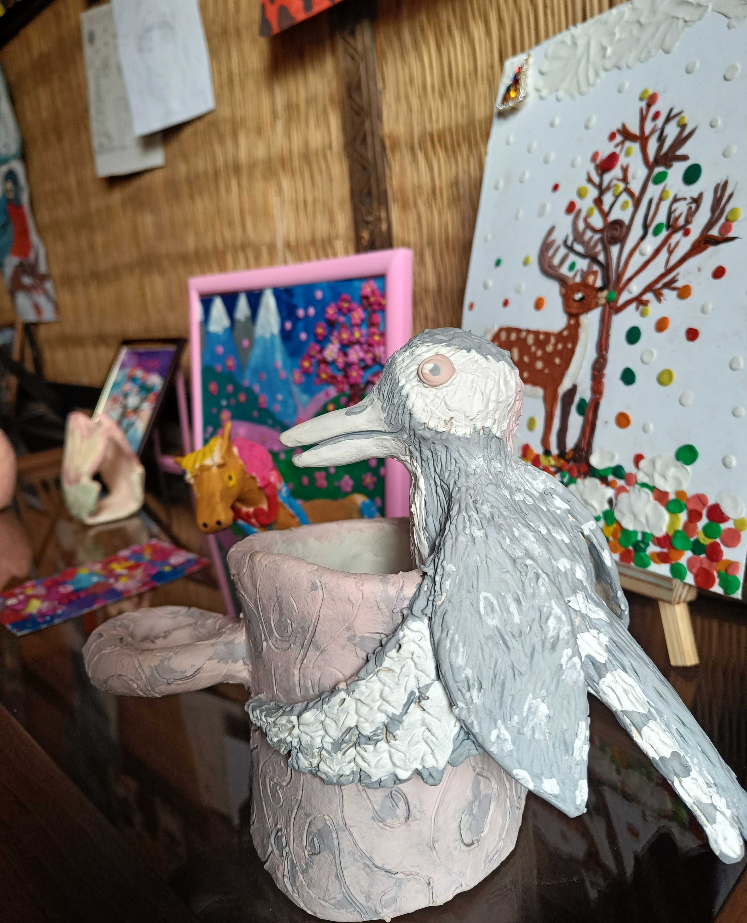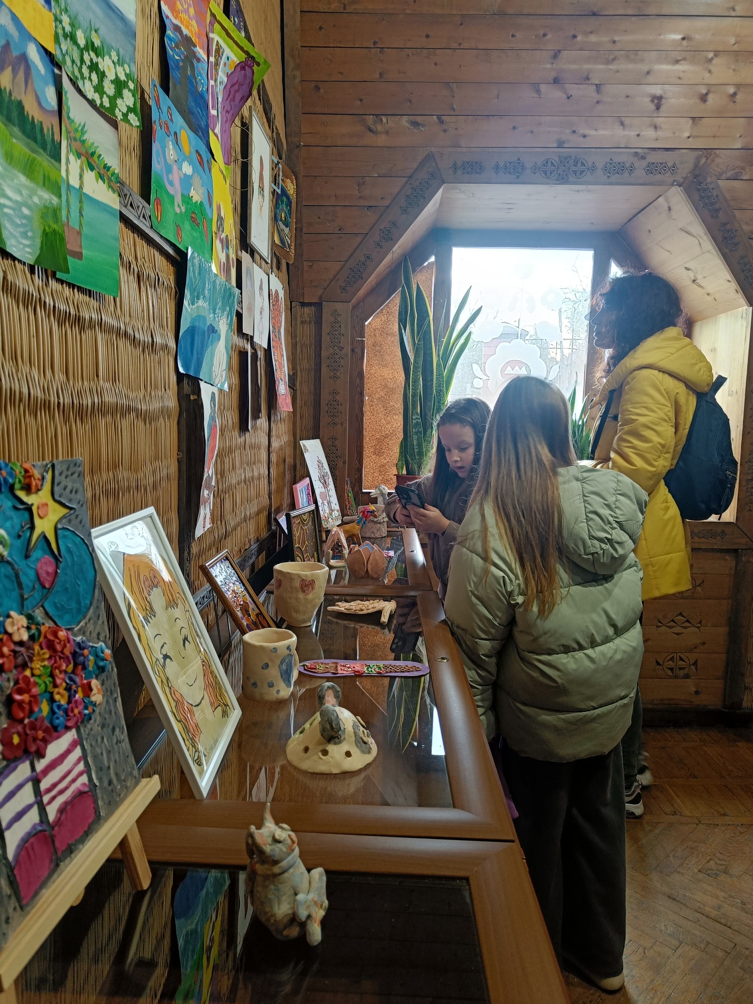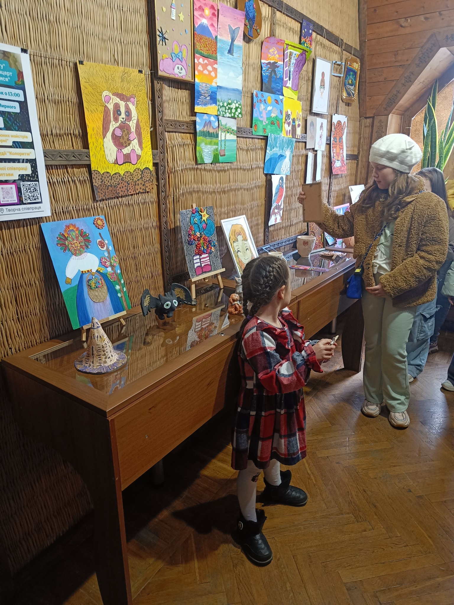 Виставка робіт вихованців «Творчої майстерні», учнів Полтавської спеціальної школи у ПОЦЕВУМ та дітей студії «Розумне совеня» представила дитячі малюнки, створені у різних техніках і вироби з різних пластичних матеріалів. Роботи дітей демонструють вміння і креативне бачення юних майстрів віком від 4 до 13 років.