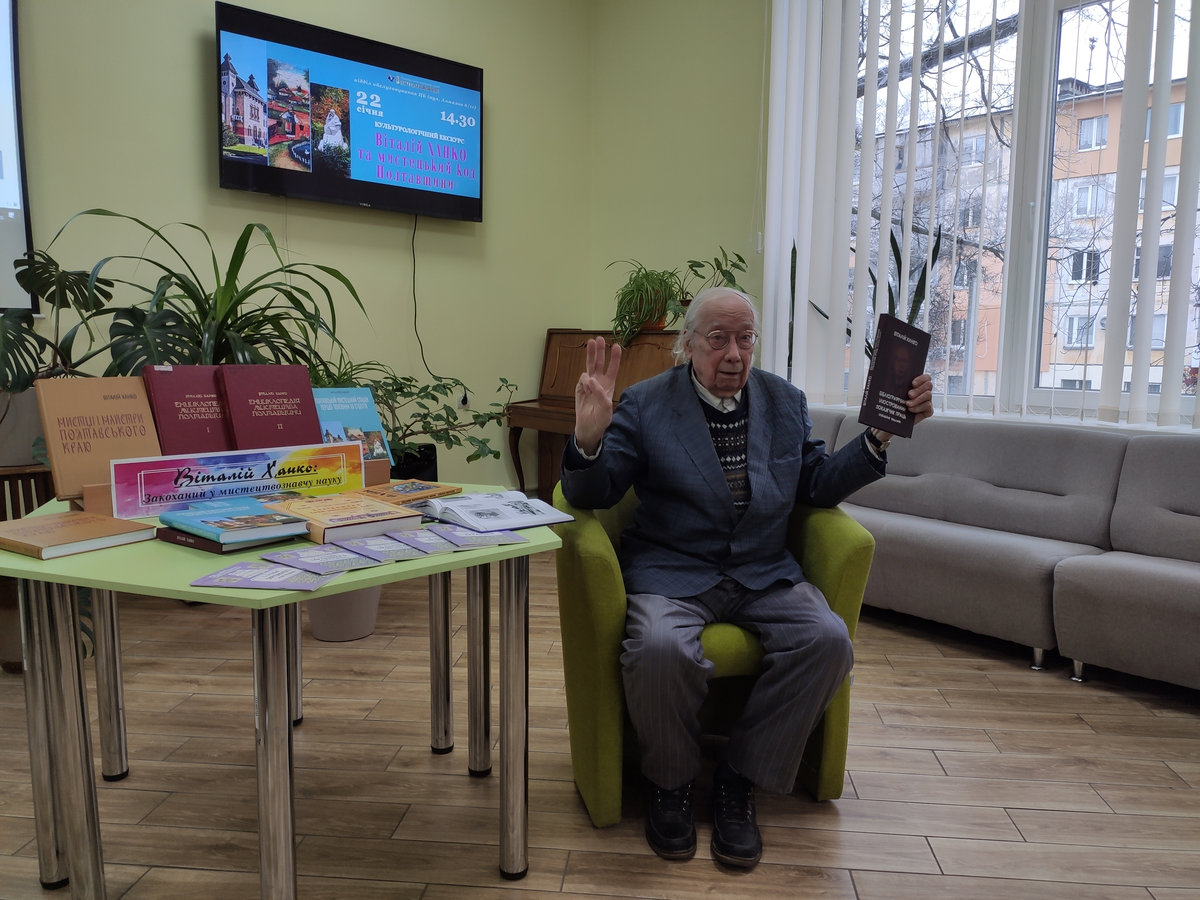 Днями в Центральній бібліотеці Полтавської міської територіальної громади відбувся захопливий культурологічний екскурс «Віталій Ханко та мистецький код Полтавщини». Разом з відомим полтавським вченим, істориком мистецтва, бібліографом, музейником, педагогом Віталієм Ханком учасники зустрічі, серед яких - представники закладів освіти міста, науковці кафедри теорії і методики технологічної освіти факультету технологій та дизайну Полтавського національного педагогічного університету імені В.Короленка, методисти Центру професійного розвитку педагогічних працівників Полтавської міської ради, поціновувачі мистецтва - намагалися розшифрувати «мистецький код», який століттями закладався у вигинах опішнянських глечиків та орнаментах земських шкіл.