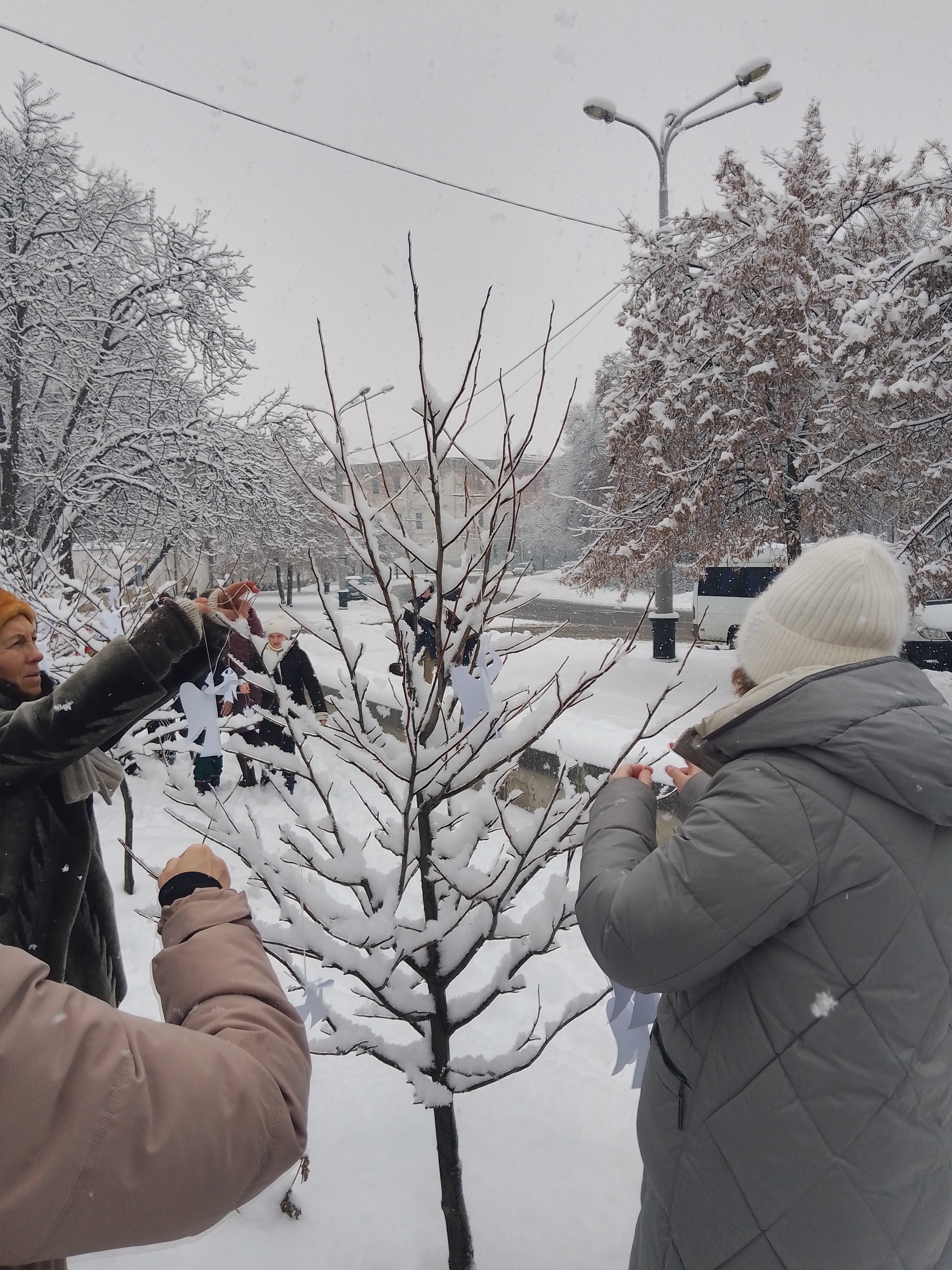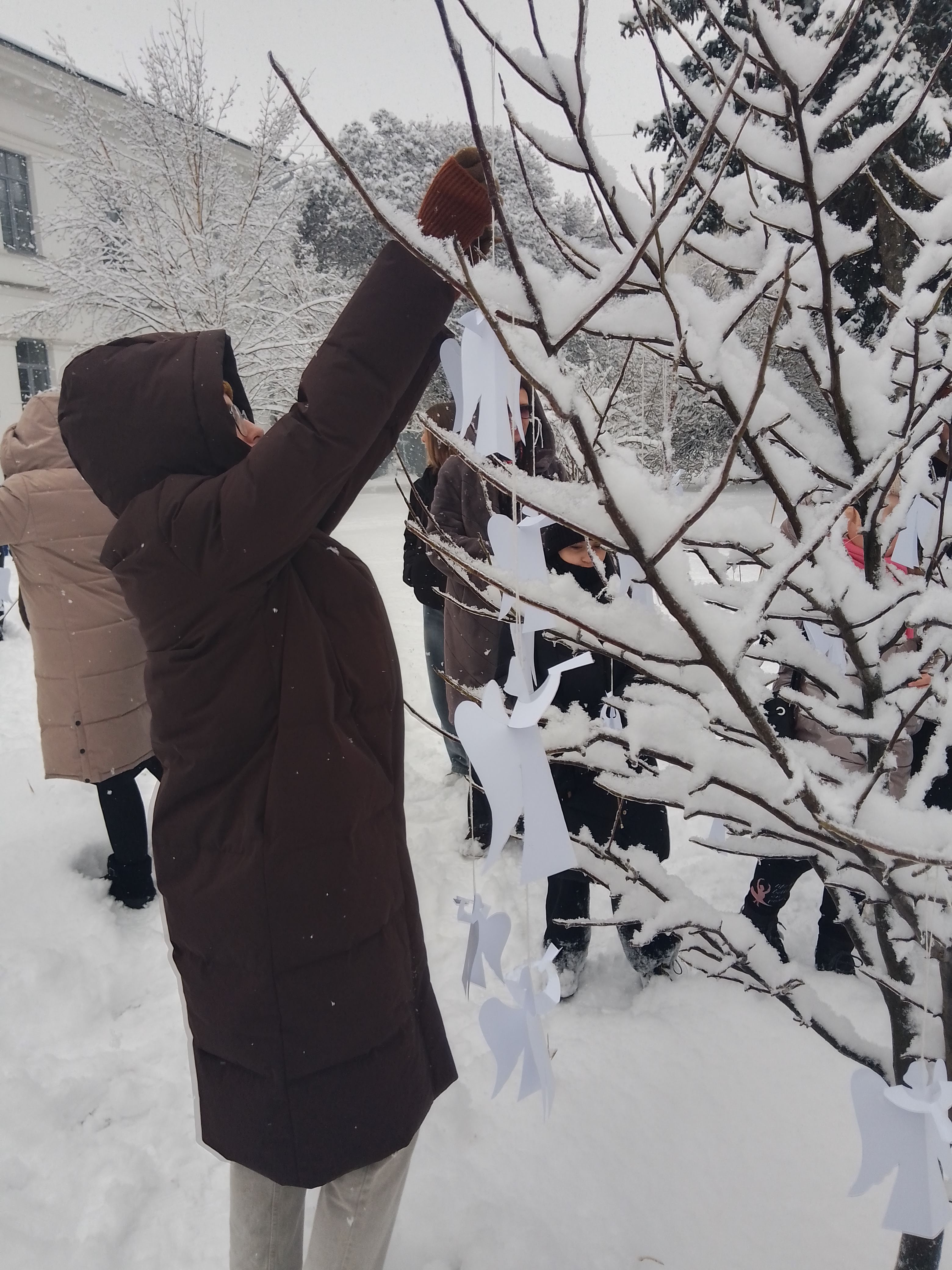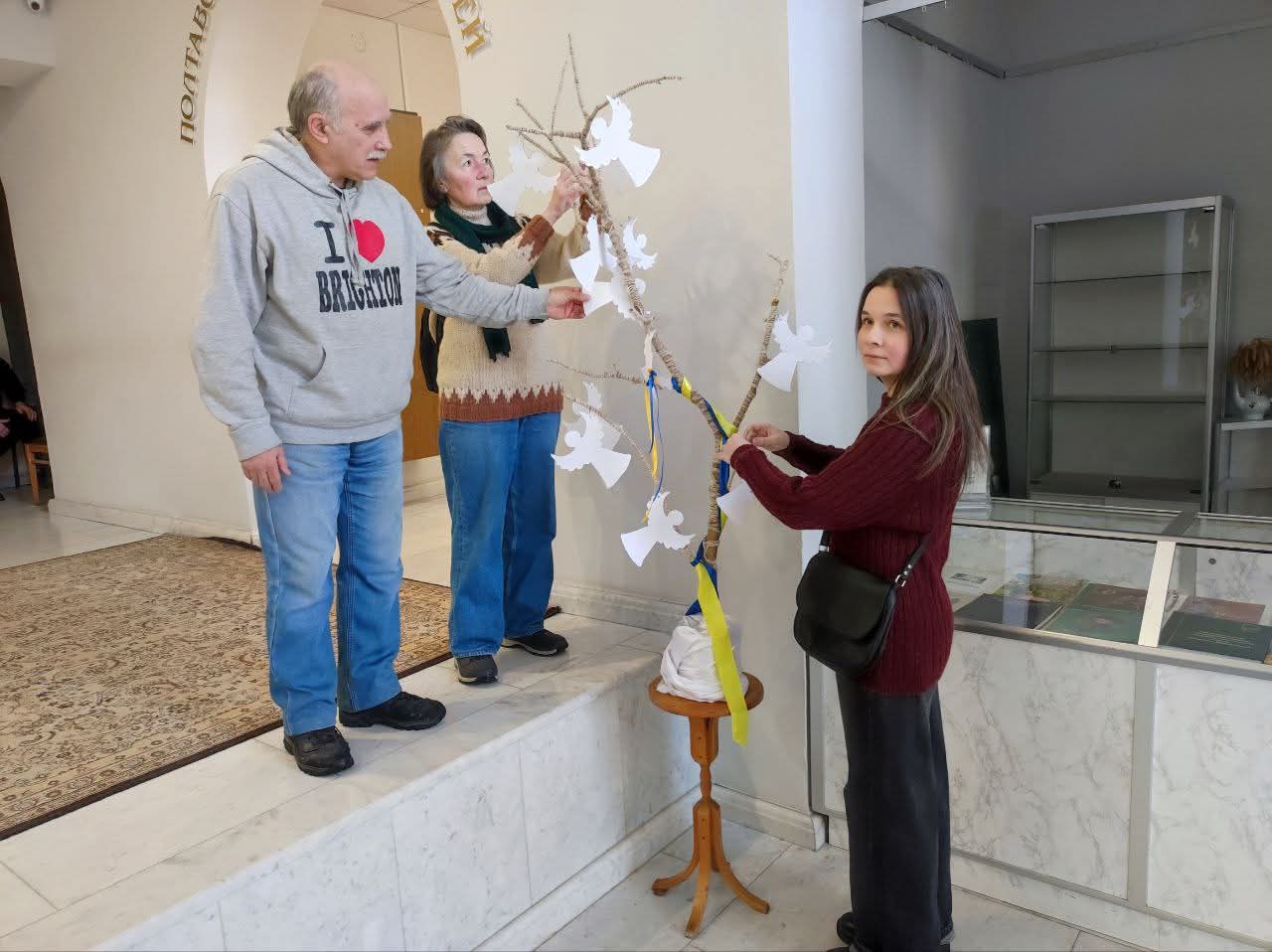Заклади культури Департаменту культури, молоді та сім'ї Полтавської міської ради долучилась до тихої акції, розмістивши янголів на деревах біля своїх закладів як символ подяки полеглим воїнам.