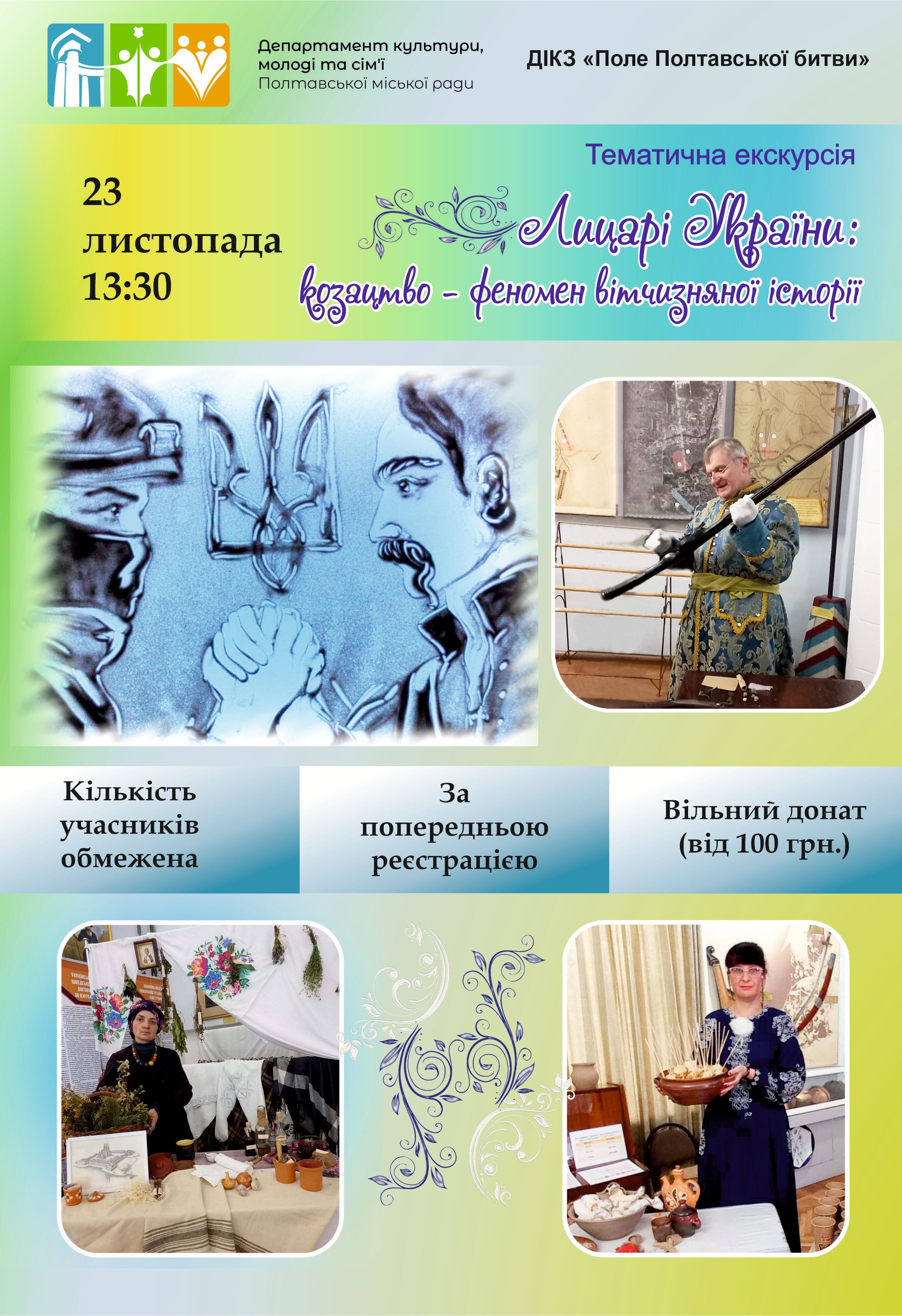 Запрошуємо на тематичну екскурсію «Лицарі України: козацтво - феномен вітчизняної історії» — мандрівку сторінками минулого, де оживає звитяга, честь та давні традиції нашого народу. Екскурсія відбудеться 23 листопада 2025 року о 13:30 в музеї історії Полтавської битви за адресою вул. Шведська Могила 32.