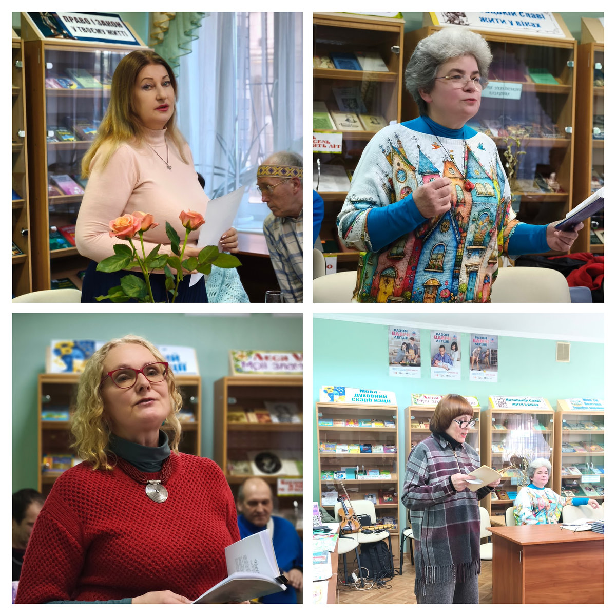 Зустріч була насичена та натхненна – виступи поетів, чарівна музика та спів під гітару, все це створило чудову атмосферу весняного настрою. Тетяна Ваценко представила свою нову збірку поезії, яка нещодавно вийшла у світ під назвою «Терен-зілля», і присвячена загиблому воїну-герою Денису Бондареву. Поділилися своїми поетичними здобутками Інна Снарська та Наталія Жовнір – читали вірші і нові, і старі та головне життєрадісні і душевні. Олексій Семенов, окрім гри на гітарі, представив також творчість молодої поетеси Анастасії Дудник, що вже з 2014 року захищає нашу Батьківщину. Світлана Жувак – виконавиця пісень під гітару, подарувала слухачам декілька ліричних композицій.