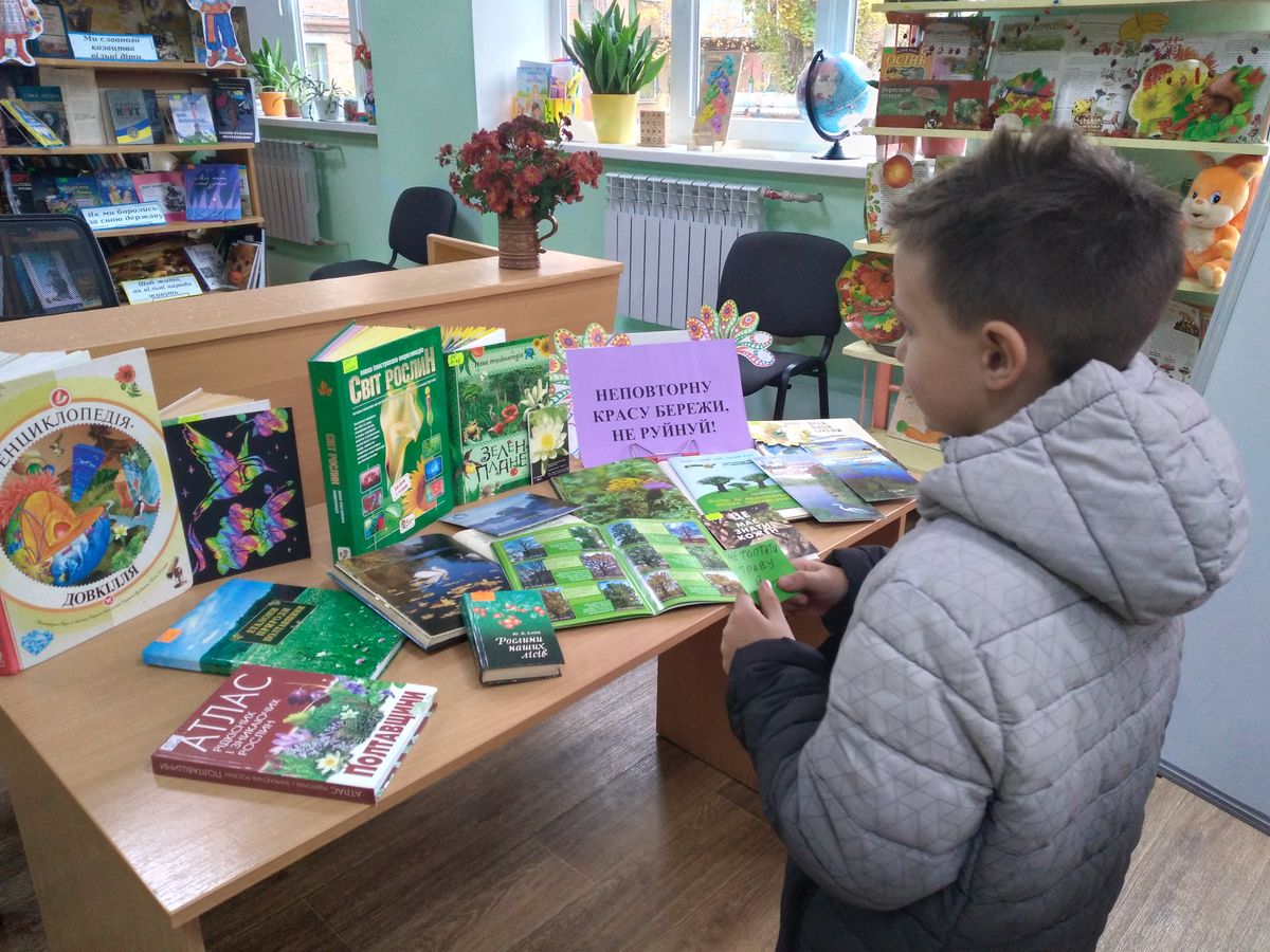 У бібліотеці було оформлено тематичну книжкову поличку «Неповторну красу бережи, не руйнуй!», на якій представлено яскраві та пізнавальні видання про природу і природні пам’ятки рідного краю. Полтавщина — це справжня перлина України: її багатство — річки й плавні, природні заказники, рідкісні рослини, а також вікові дерева, які є живими свідками історії.