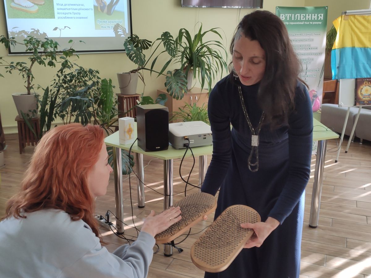 А ще присутні мали можливість познайомитися з практикою цвяхостояння, що є перевіреним часом інструментом для роботи з тілом і внутрішнім простором або енергією, а також, є сучасним трендом для любителів гострих відчуттів. Цей вид тілесної практики за допомогою дошки Садху, що розвиває вміння відчувати своє тіло, вміння керувати своїм тілом та емоціями, спробували всі зацікавлені.