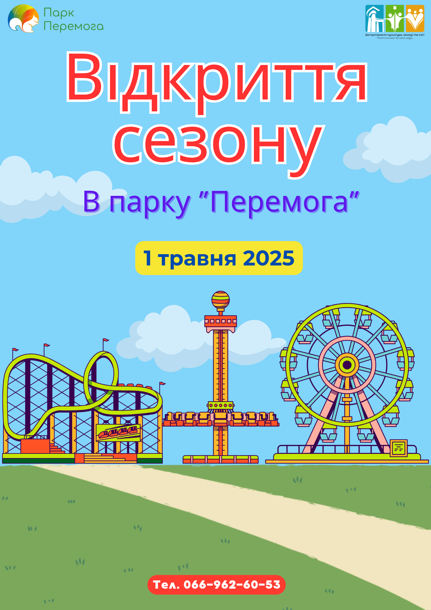 Нагадуємо, що завтра 1-го травня - відкриття сезону та початок роботи атракціонів у Полтавському міському парку культури та відпочинку «Перемога».