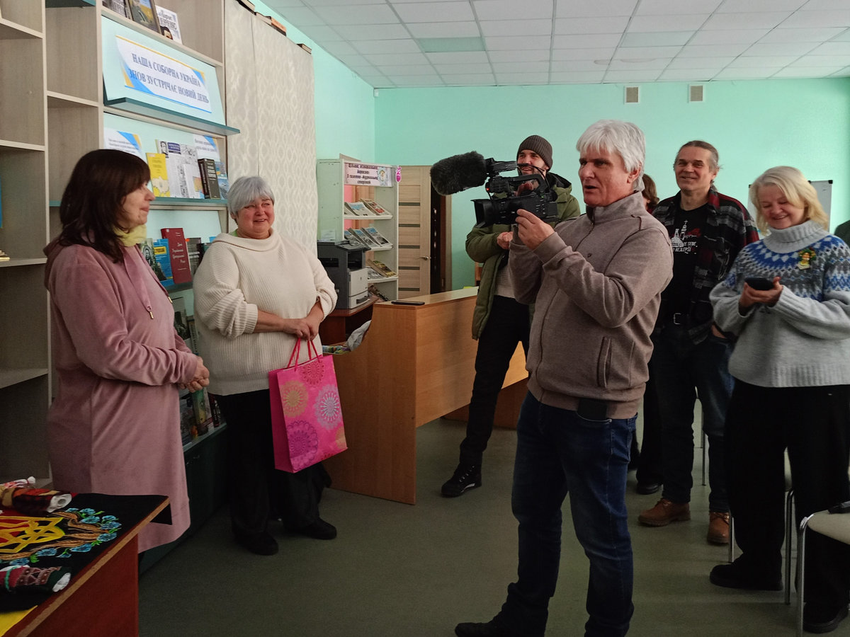 Друзі з Чехії знову виявили бажання відвідати нашу бібліотеку, щоб поспілкуватися з активними волонтерками, як вони говорили на своїй мові, «бабічками». Головний редактор телебачення NOE міста Оломоуць Лео Річка знімав безпосередньо саму зустріч, а також багато спілкувався і брав інтерв’ю в учасників зустрічі: волонтерів, військових.